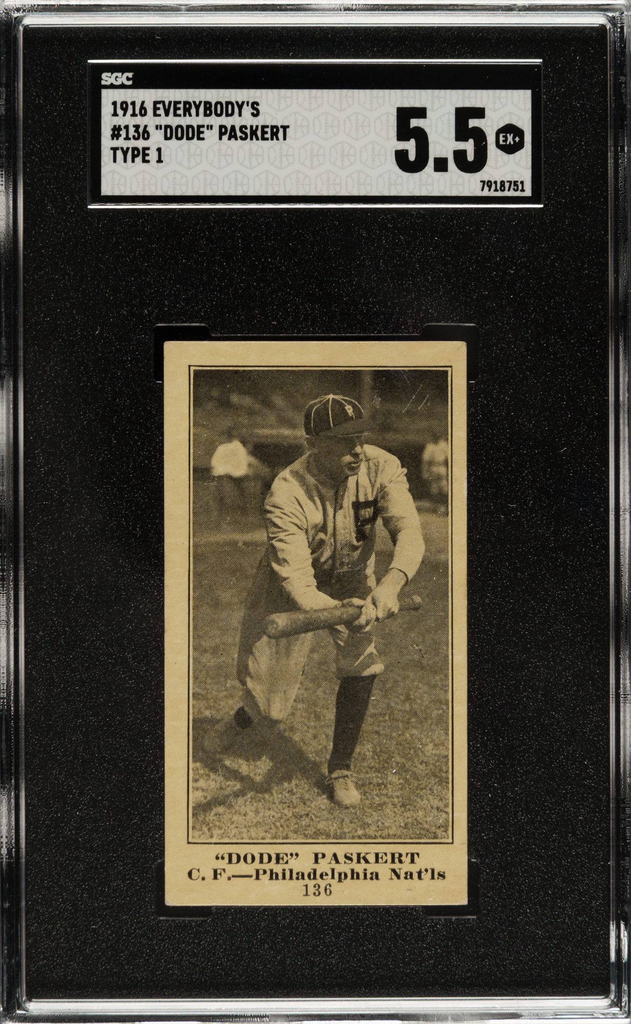 1916 M101-4 Everybody's Clothing Store (Type 1) #136 "Dode" Paskert SGC EX+ 5.5