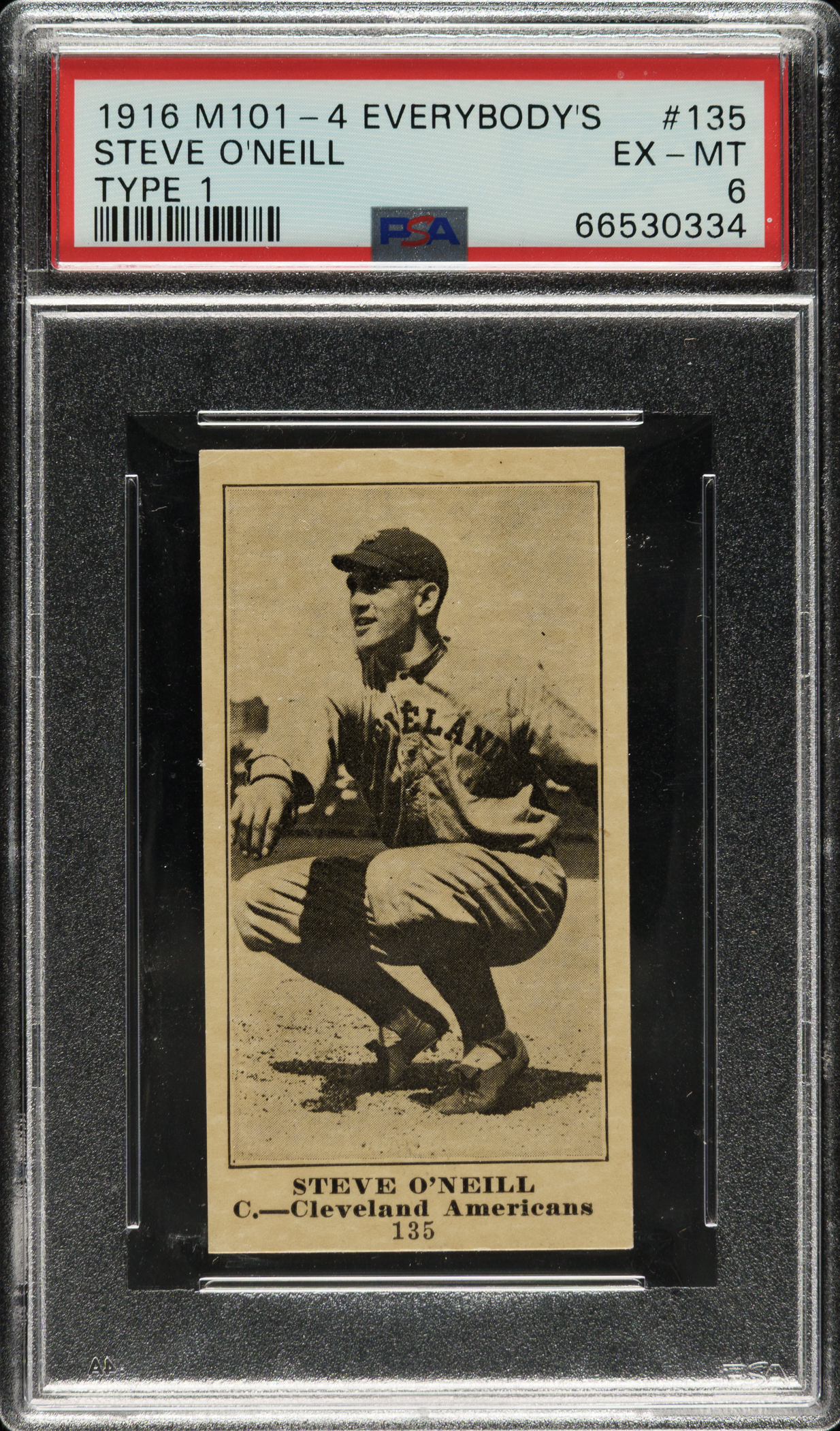 1916 M101-4 Everybody's Clothing Store (Type 1) #135 Steve O'Neil PSA EX-MT 6 - 1 of 1 - Highest Graded!
