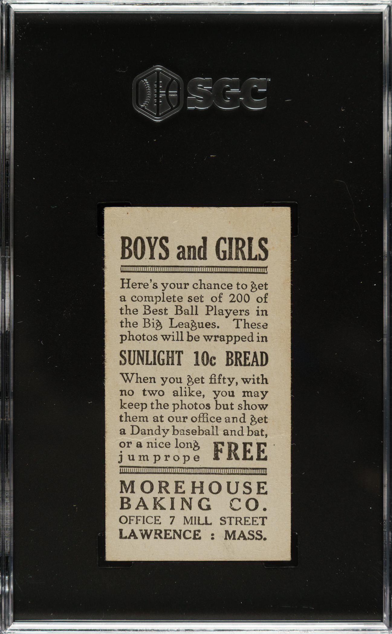 1916 M101-4 Morehouse Baking #62 Jacques Fournier SGC FAIR 1.5 - The ONLY SGC-Graded Example!