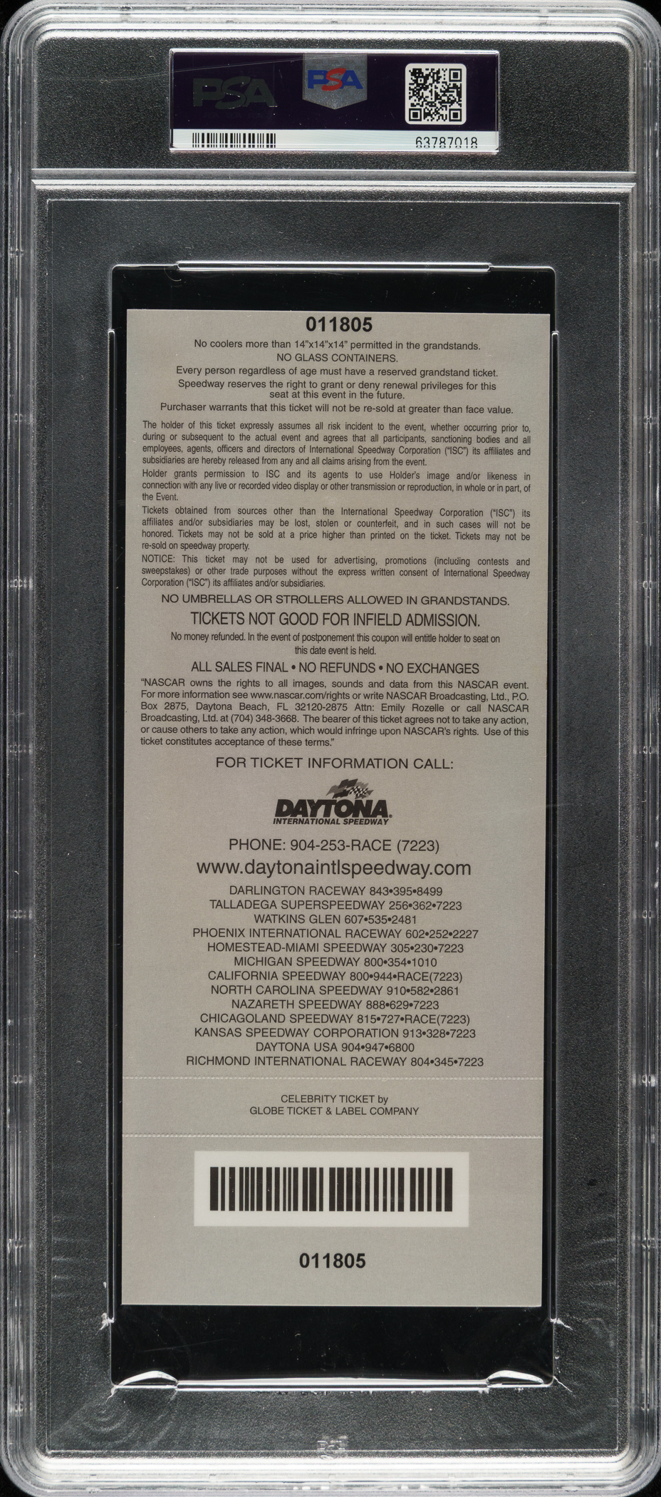February 18, 2001 Daytona 500 Full Ticket Stub PSA NM 7 - Dale Earnhardt's Last Race