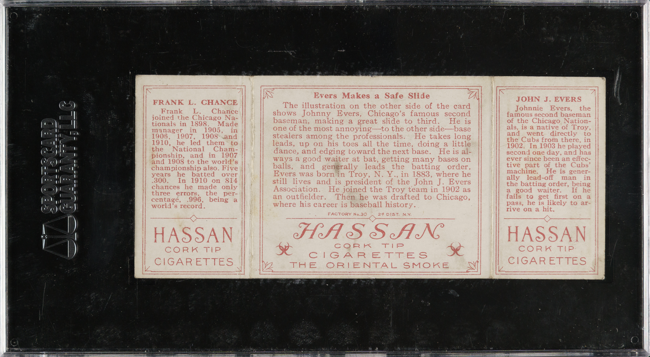 Graded VG 40 by SGC. Chicago Cub Hall of Famers Johnny Evers and Frank Chance.
