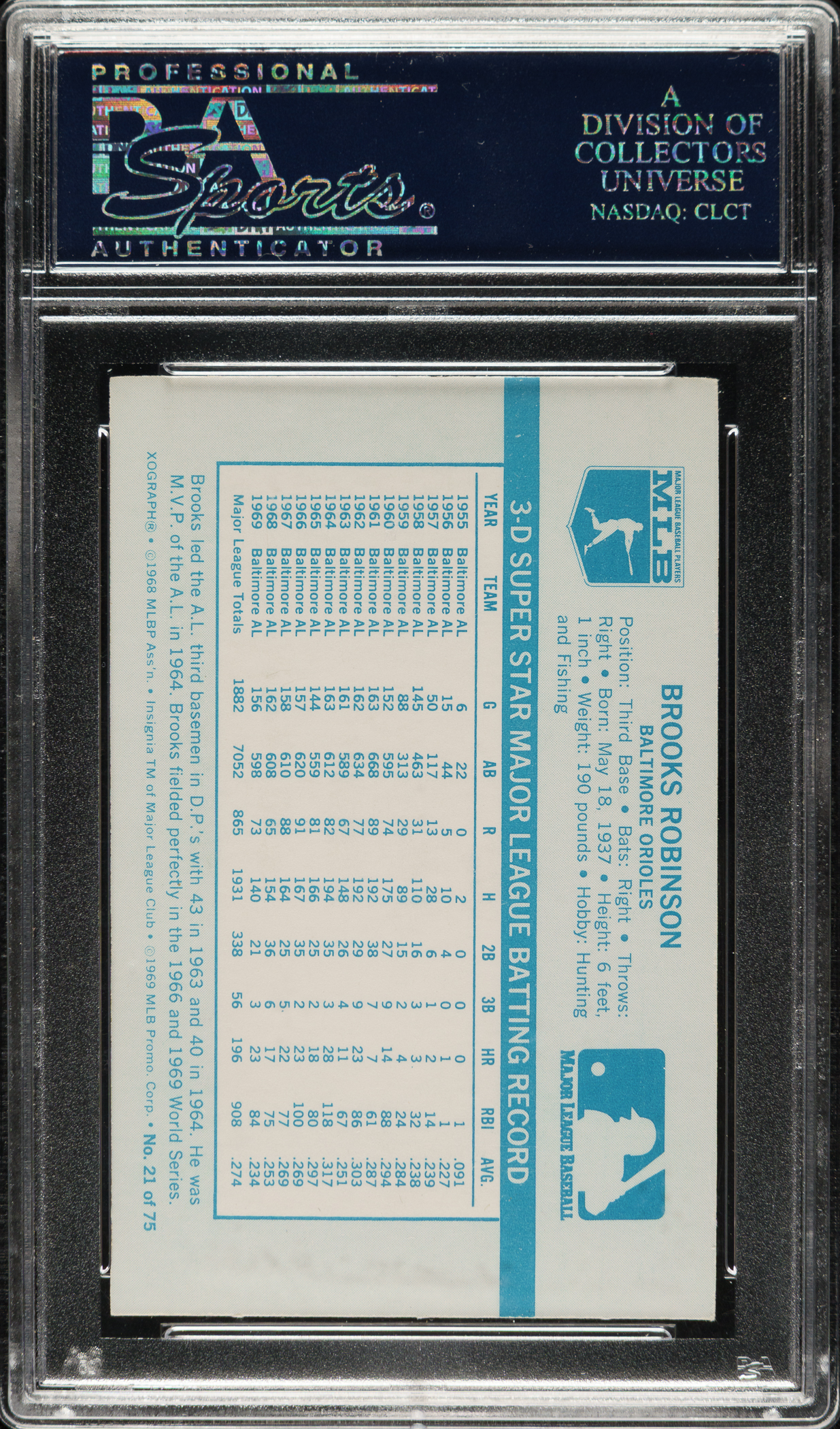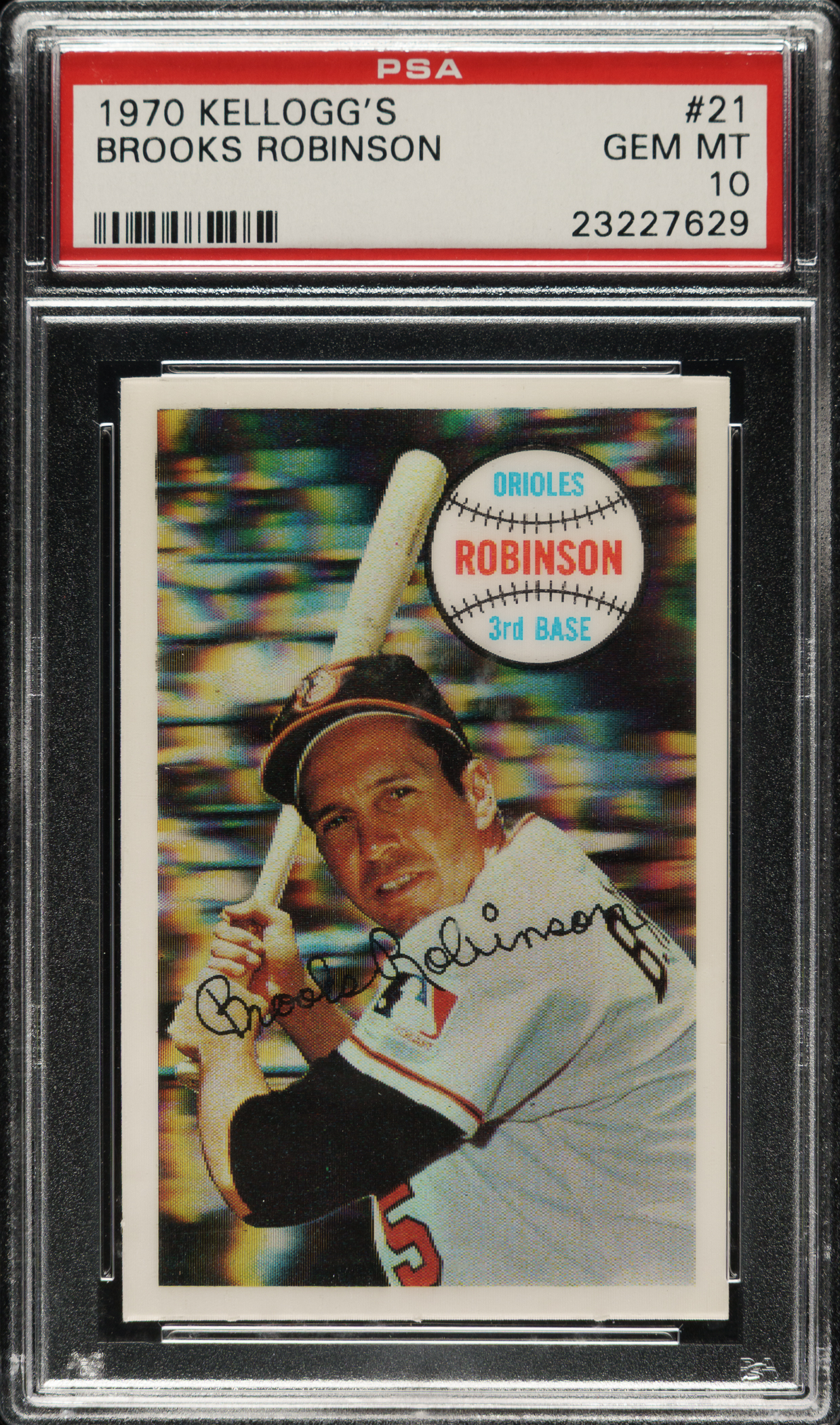 Graded GEM MINT 10 by PSA. Baltimore Orioles Hall of Famer Brooks Robinson.