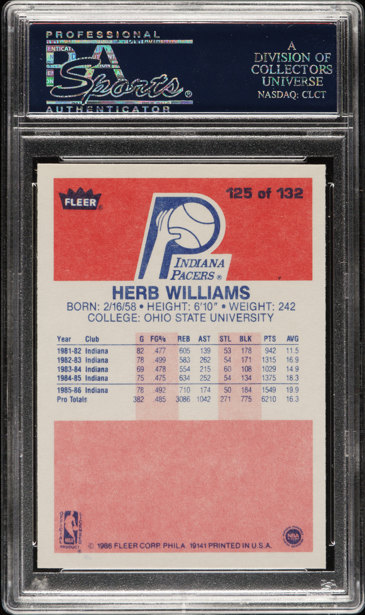 1986-1987 Fleer Basketball #125 Herb Williams PSA GEM MINT 10
