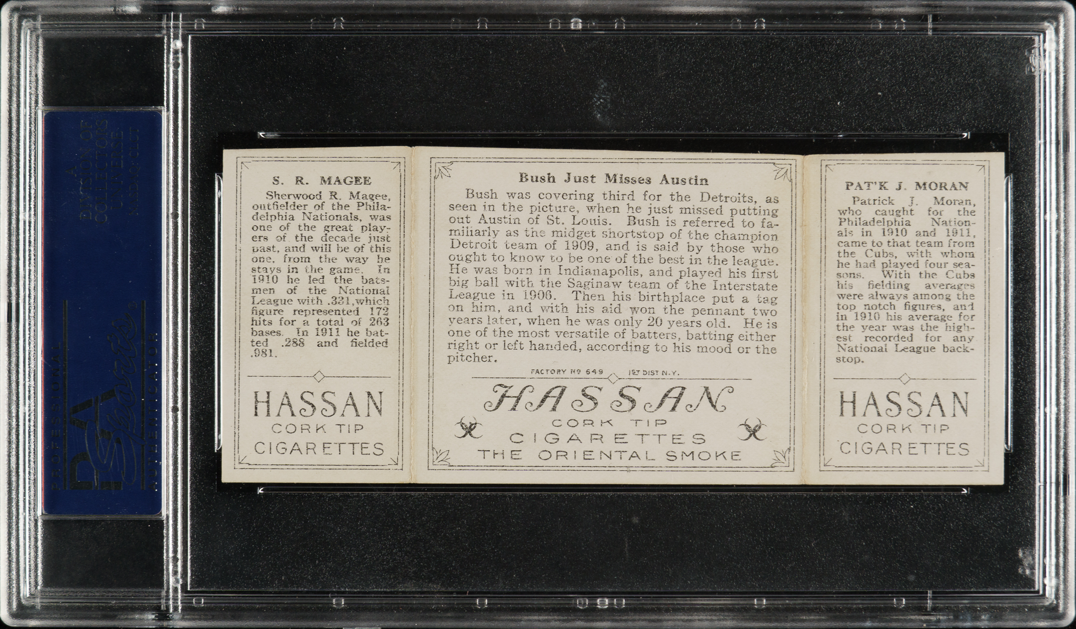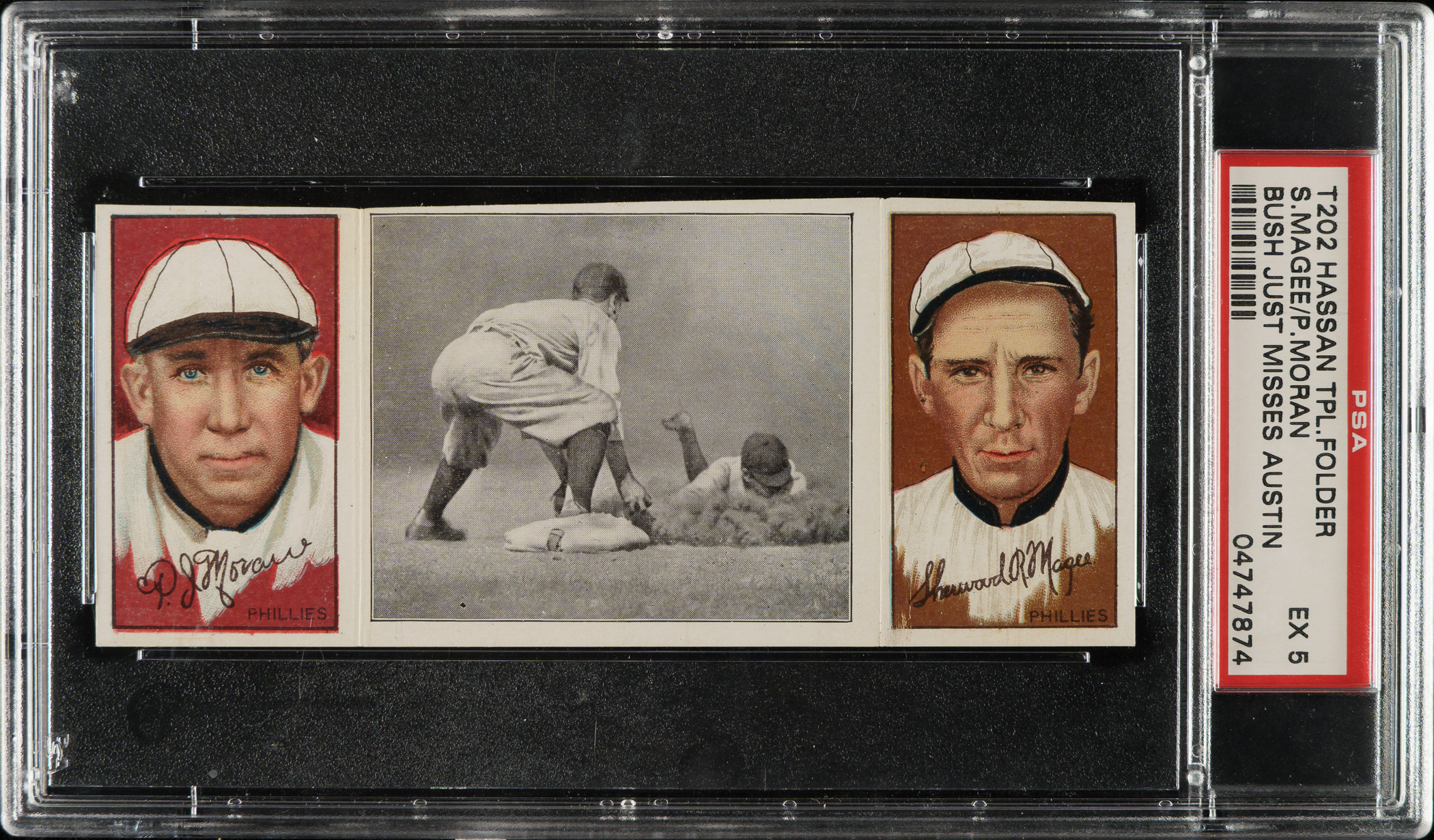 1912 T202 Hassan Triple Folder "Bush Just Misses Austin" Moran/Magee PSA EX 5