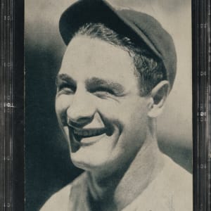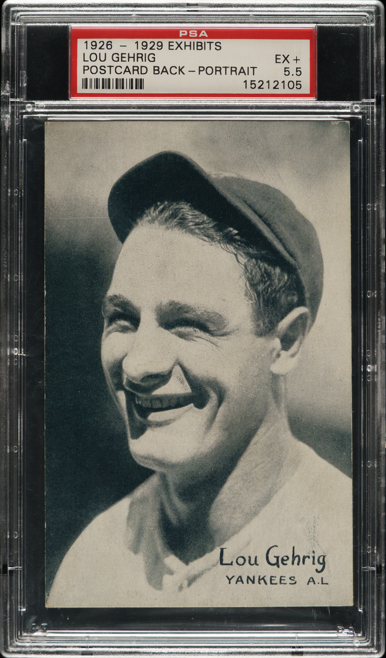 1926-1929 "Exhibit-Style Postcard-Back" Lou Gehrig Portrait PSA EX+ 5.5