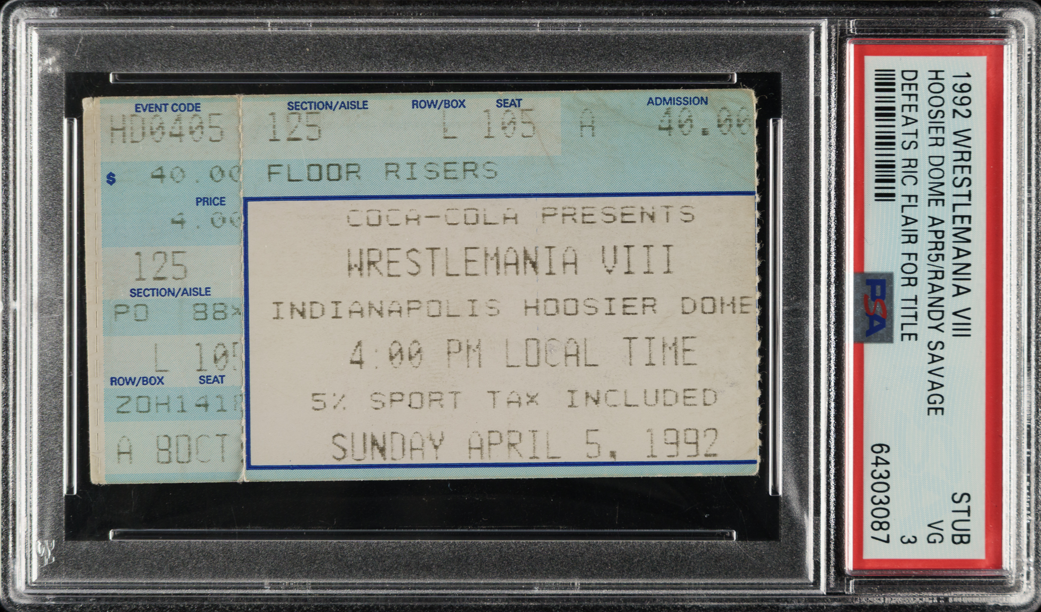 April 5, 1992 WrestleMania VIII Ticket Stub PSA VG 3 - Randy Savage Defeats Ric Flair for Title
