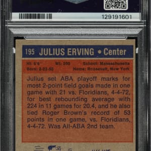 PSA/DNA has encapsulated the card, grading the signature GEM MINT 10 and the card NM-MT 8. Virginia Squires Hall of Famer Julius Erving.