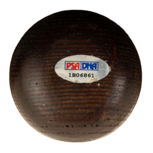 Derek Jeter KC Slammer block-letter (full name) model ("K18") bat dating from the Yankees' 1996 World Championship season. The bat, which is not cracked, displays evidence of moderate use, including a few ball marks (with white leather scuffs) and a moderate coat of pine tar on the handle. The bat's model number ("K18"), length ("3"), and weight ("2") are stamped into the knob. As noted in PSA/DNA's accompanying letter, this model bat was ordered by Jeter for batting practice. Jeter is the greatest shortstop in New York Yankees history and one of the few players to be honored with the title of "Captain." During his celebrated twenty seasons in New York, the Yankees won seven pennants and five World Championships. Like Ruth, Gehrig, DiMaggio, and Mantle before him, Jeter is one of the most revered players in team history. He was elected to the Hall of Fame in 2020. Length: 33 inches. Weight: 31.6 ounces. Full LOA from John Taube of PSA/DNA (a corresponding sticker affixed to the barrel end). The size/weight of this item requires that there will be an additional shipping charge for this lot.