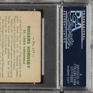 Graded GOOD 2 by PSA. St. Louis Cardinals Hall of Famer Rogers Hornsby.