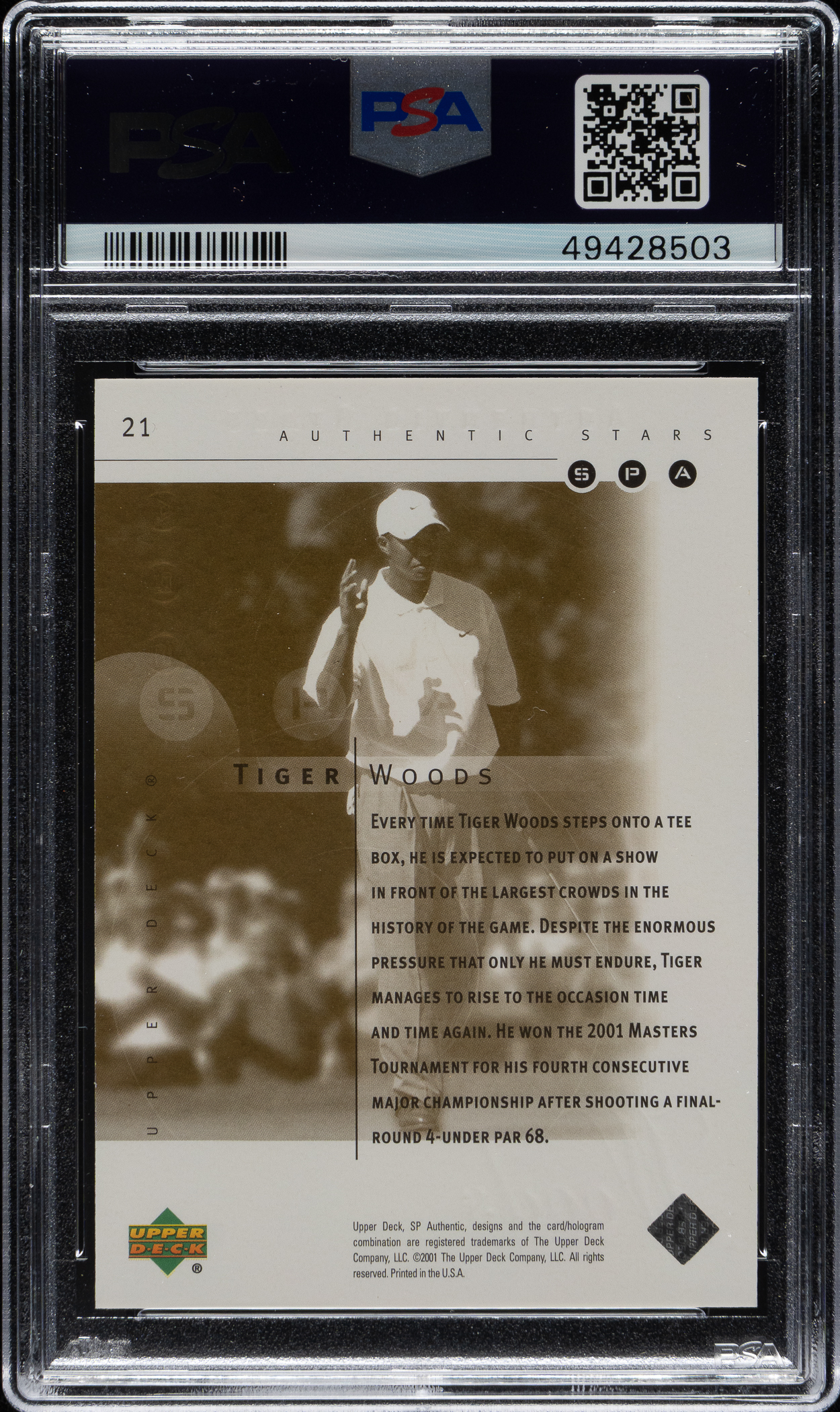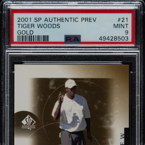 2001 Upper Deck SP Authentic Previews Golf #21 Tiger Woods Rookie Gold #63/250 PSA GEM MINT 9