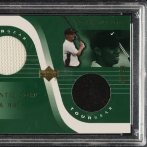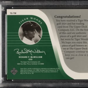 2001 Upper Deck Golf Tour Gear-Shirt & Hat #TG-TW Tiger Woods Rookie #38/50 PSA NM-MT 8