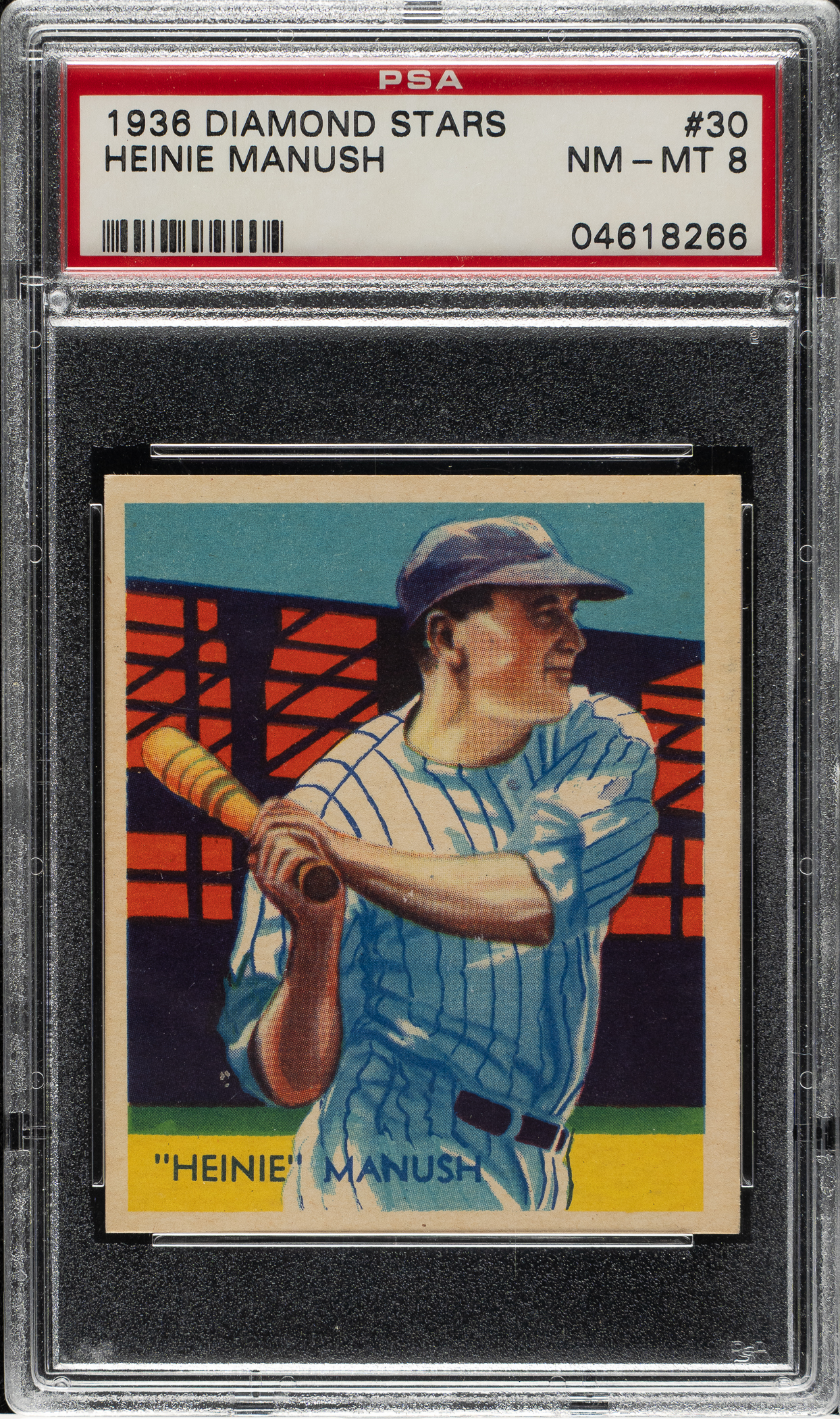 Graded NM-MT 8 by PSA. Washington Senators Hall of Famer Heinie Manush.