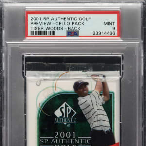 2001 Upper Deck SP Authentic Previews Golf Unopened Cello Pack PSA MINT 9 - #21 Tiger Woods on Back