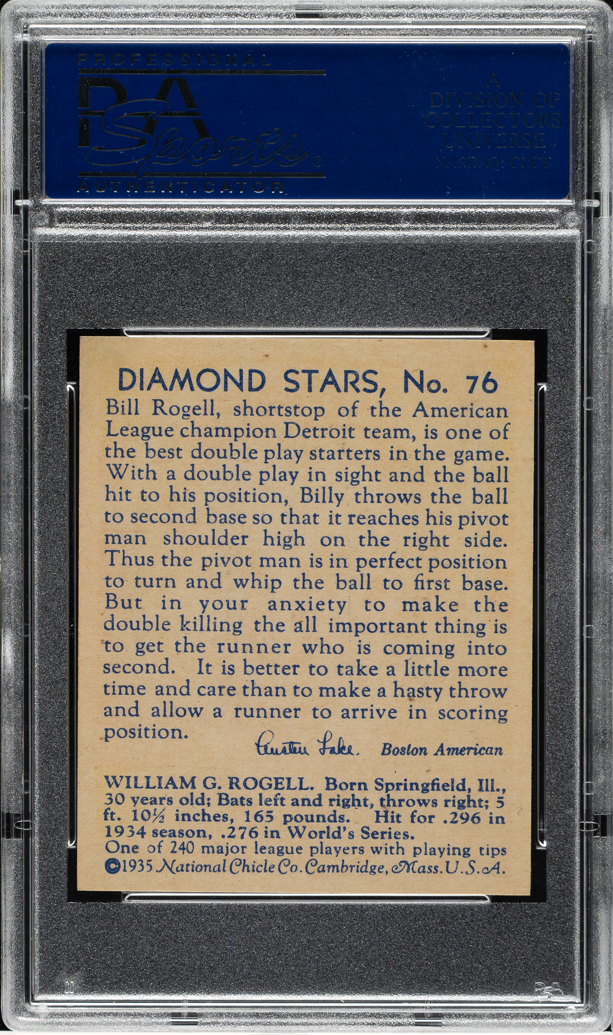 1934-1936 R327 Diamond Stars #76 Bill Rogell (1935 Blue Back) PSA MINT 9