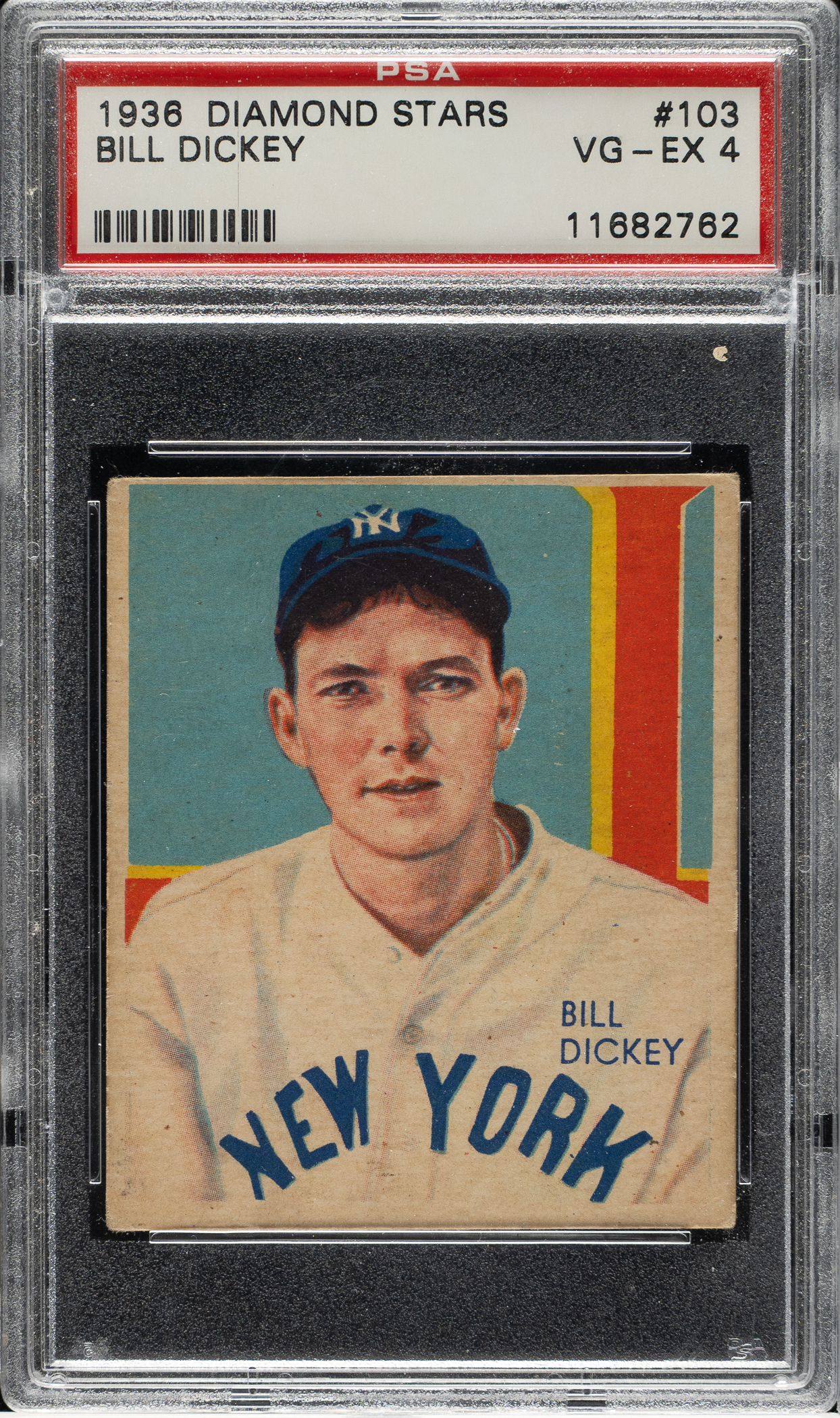 1934-1936 R327 Diamond Stars #103 Bill Dickey (1936 Blue Back) High Number PSA VG-EX 4