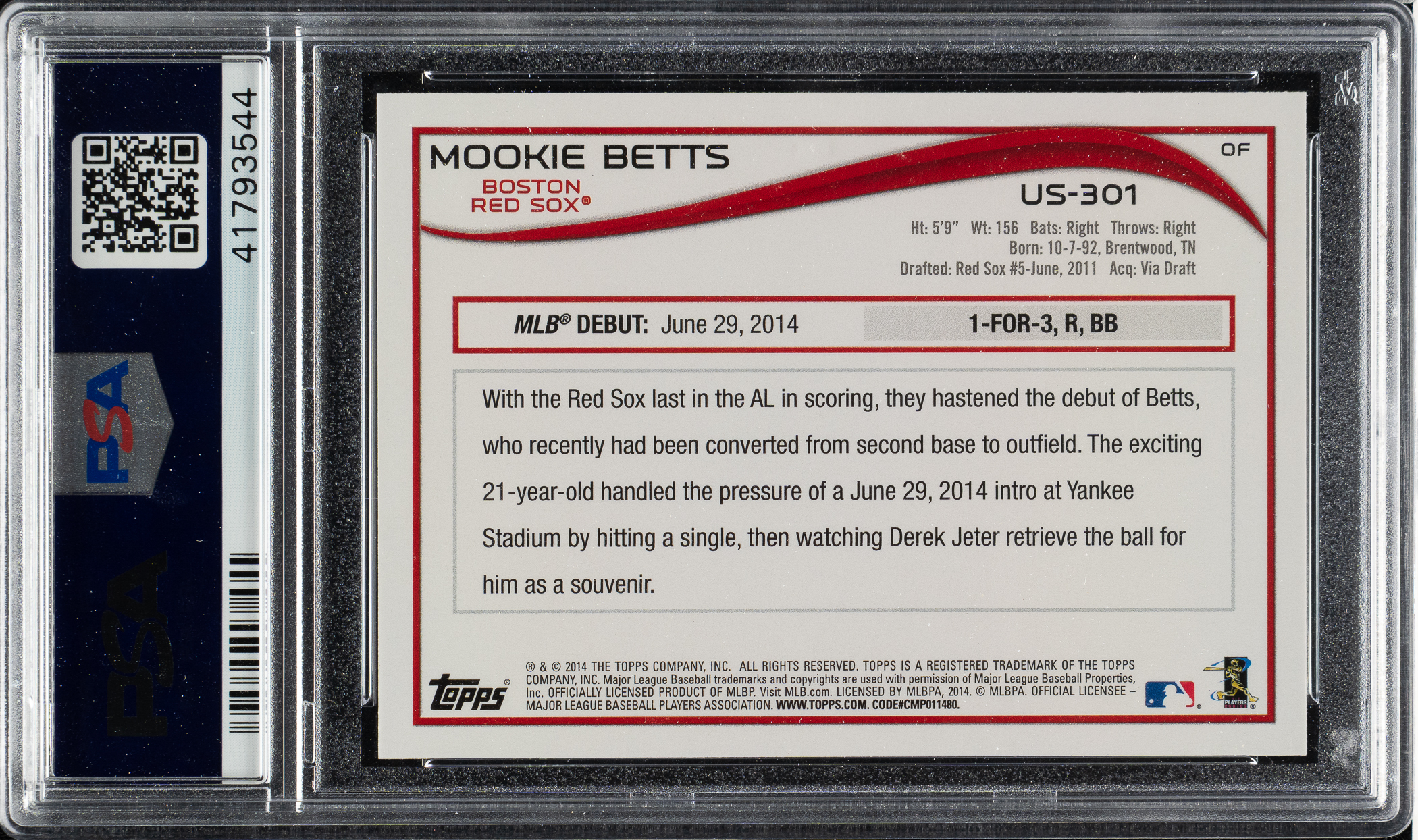 2014 Topps Update #US301 Mookie Betts PSA GEM MINT 10