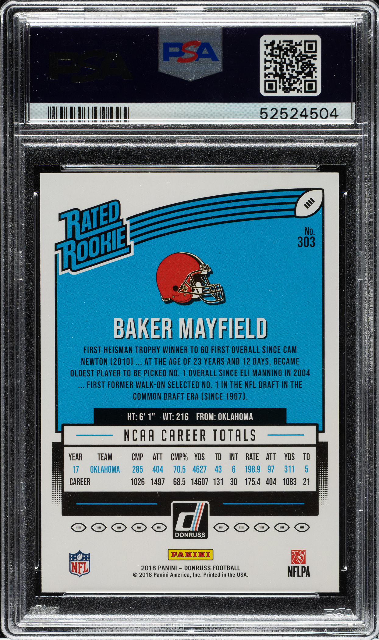 2018 Panini Donruss Football #303 Baker Mayfield Rookie PSA GEM MINT 10