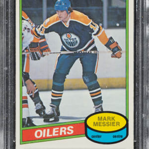 Graded MINT 9 by PSA. Edmonton Oilers hockey Hall of Famer Mark Messier.