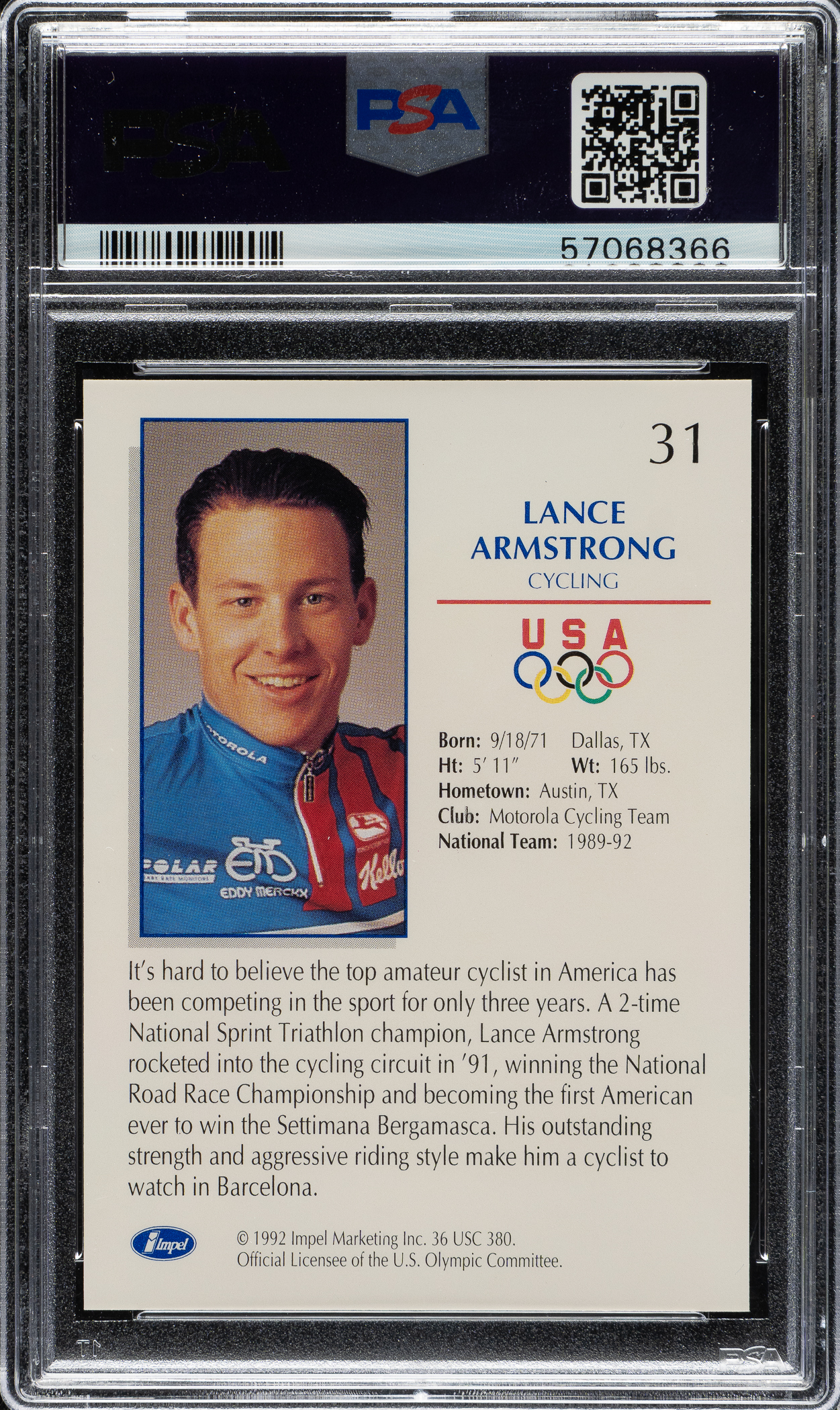 1992 Impel U.S. Olympic Hopefuls #31 Lance Armstrong Rookie PSA GEM MINT 10
