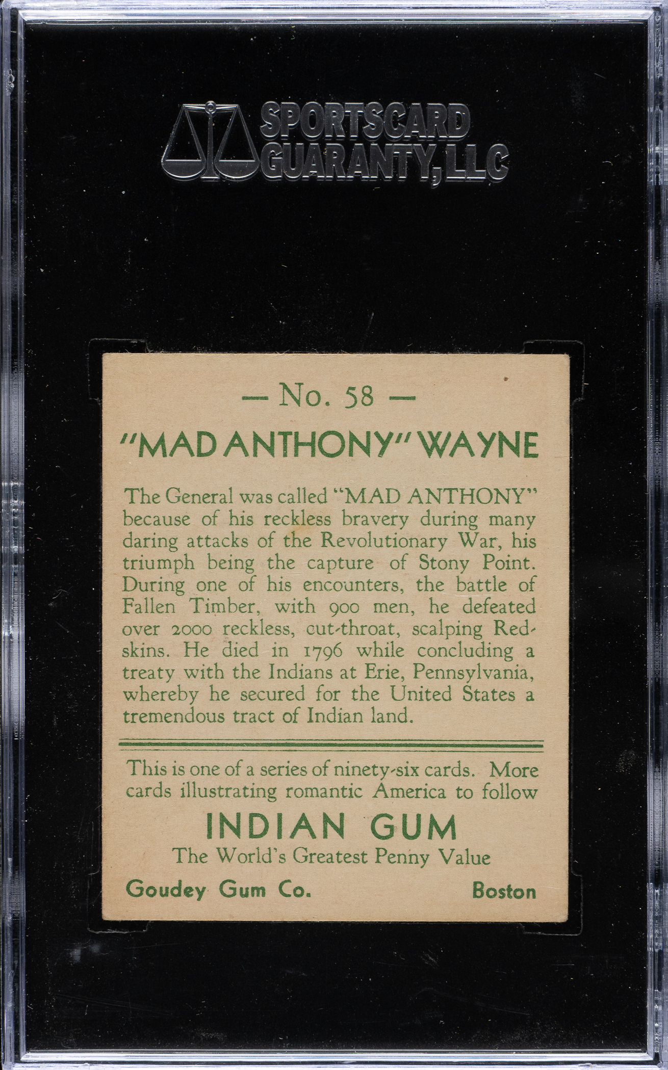 1933 R73 Goudey Indian Gum #58 "Mad Anthony" Wayne SGC EX 60