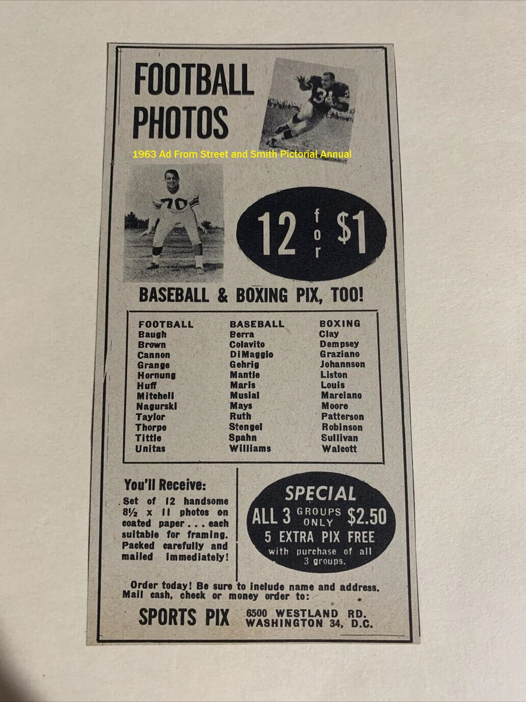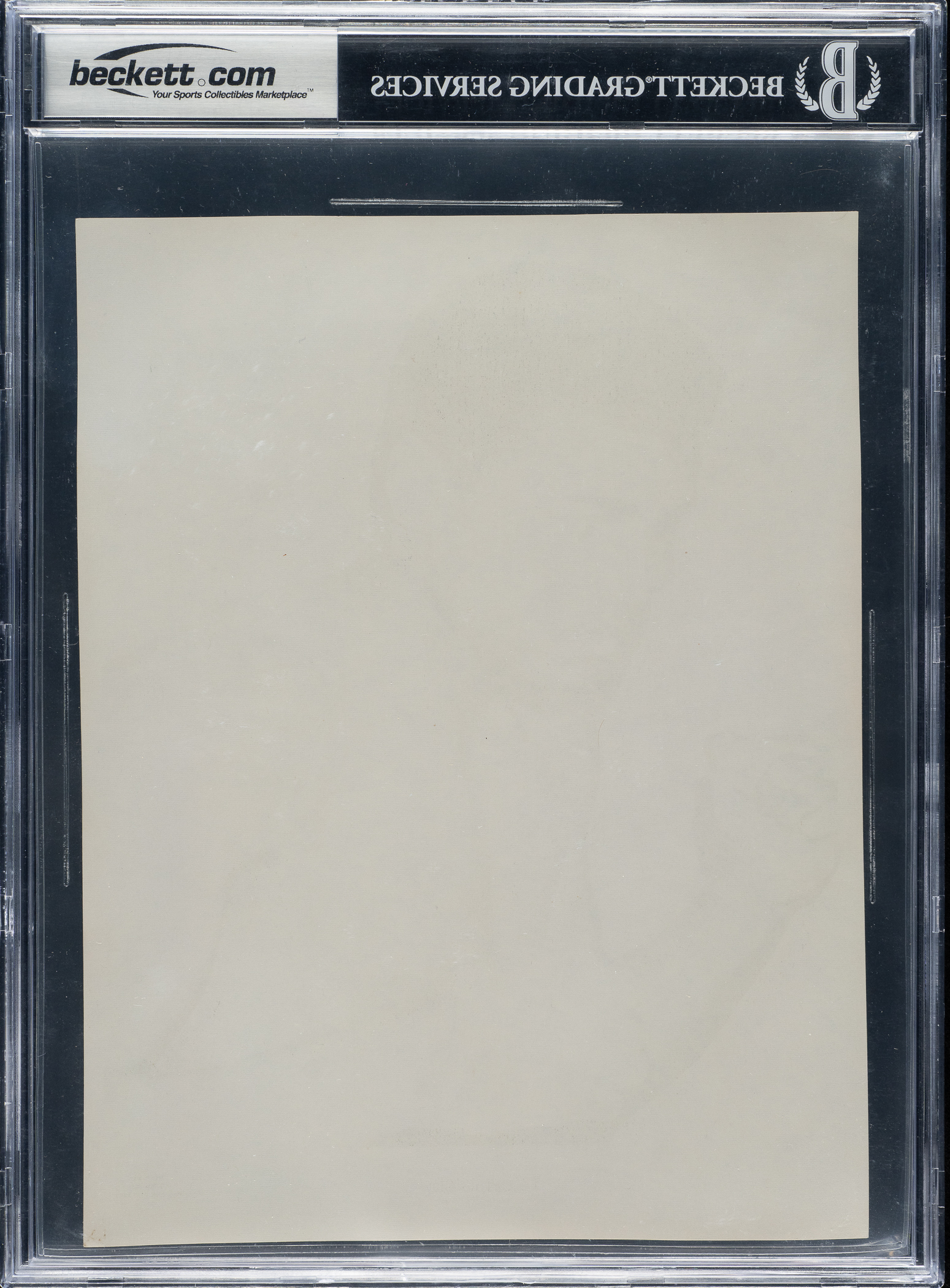 Rare blank-back, matter photographic premium of legendary boxer Cassius Clay (Muhammad Ali) issued by Sports Pix. The offered premium is printed on heavy photo paper and measures approximately 8 x 10 inches. Graded EX 5 by BVG, the piece presents extremely well, with a small bend in the lower right corner and a clean blank back. It is free of any other creases or wrinkles and has been encapsulated with a plastic sleeve for stability by BVG. While BVG has assigned a date range of 1968-1973 to this piece, it is believed that this piece may more likely date to circa 1963-1964 as Clay denounced his birth name in 1964 and officially changed his name to Muhammad Ali. Additional research reveals three different sets of Sports Pix advertised in a 1963 issue of the Street and Smith Pictorial Annual (a copy of this ad is posted online for review but does not accompany the item). Each set consists of twelve different athletes from baseball, football, and boxing. According to the advertisement, the photos are 8.5 x 11 inches and "coated," which may suggest glossy finish. The advertisement also announces five extra photos to anyone who orders all three sets. While Clay is known in a full-body pose within one of the offered sets, one operating theory for this thicker stock premium featuring a portrait pose is that it may have been one of the "bonus" photos offered to purchasers. We may never know the exact origin of this piece, but it represents the only one of its kind we have ever seen and the only one authenticated by any grading company to date. This is a fascinating premium photograph worthy of even the most advanced Ali collection!