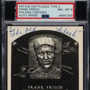 PSA/DNA has encapsulated the card, grading the signature NM-MT 8. St. Louis Cardinals Hall of Famer Frank Frisch.