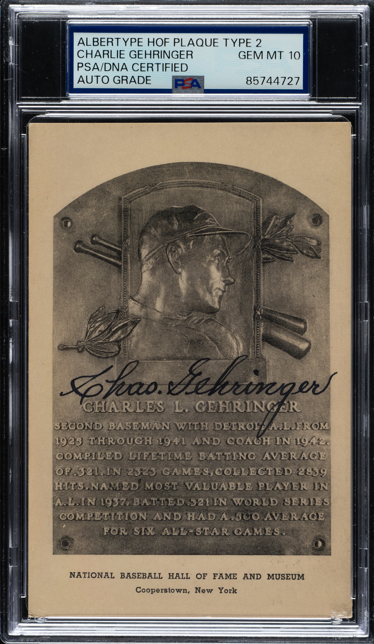 Signed 1946-1952 Albertype (Type 2) Hall of Fame Black-and-White Postcard Charlie Gehringer PSA/DNA GEM MINT 10