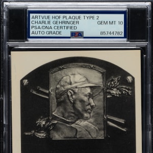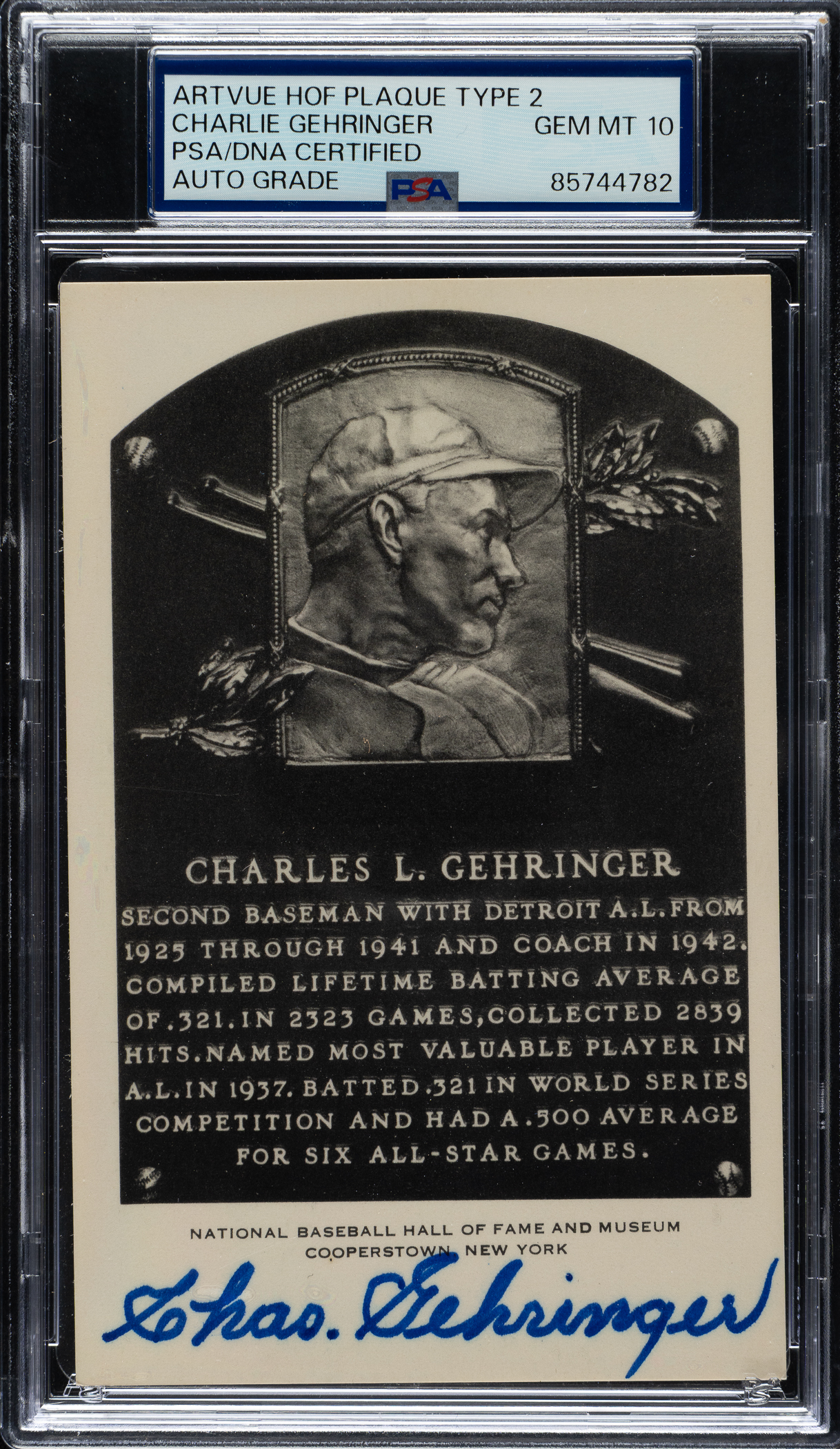 PSA/DNA has encapsulated the card, grading the signature GEM MINT 10. Detroit Tigers Hall of Famer Charlie Gehringer.