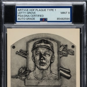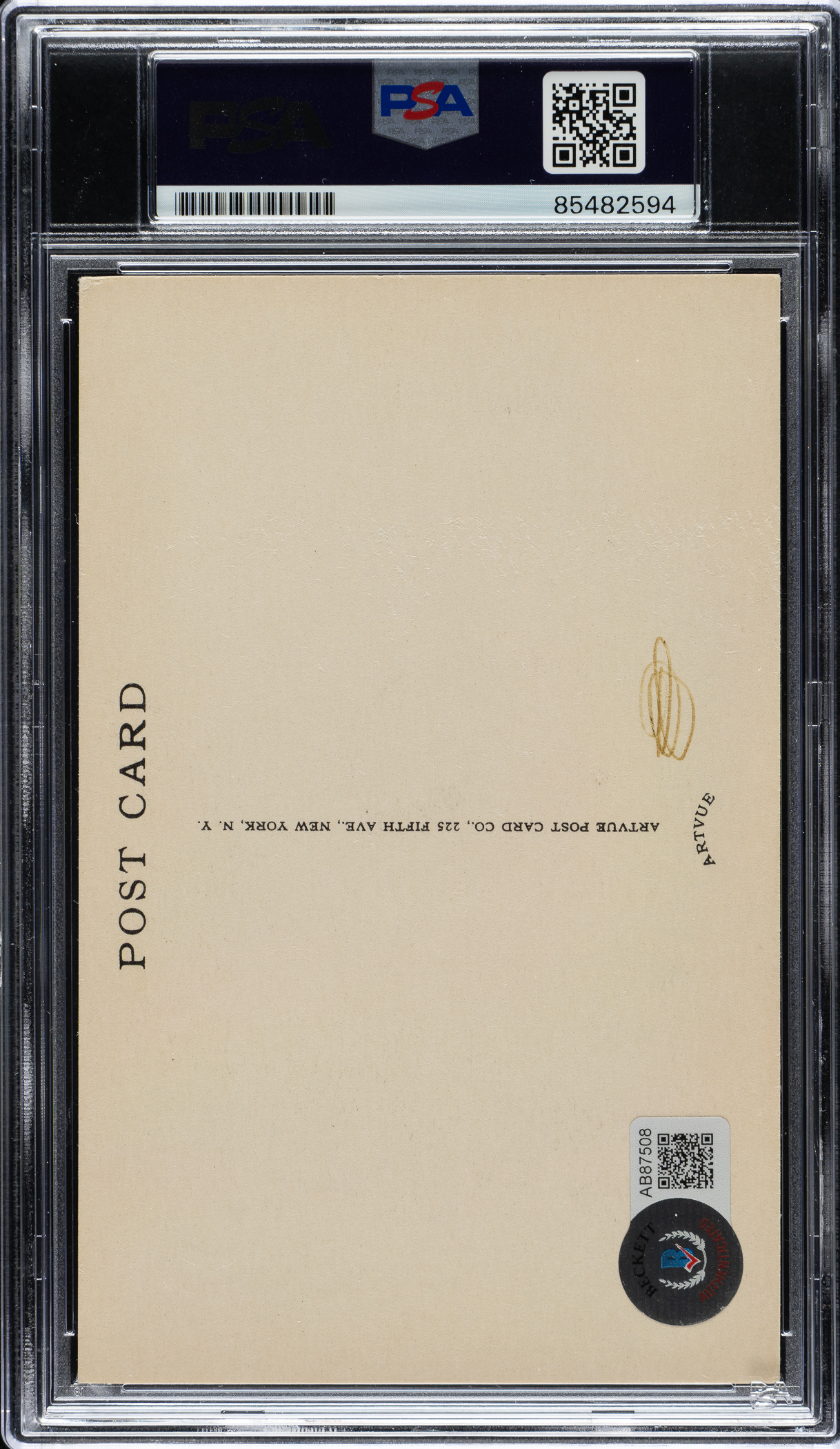 PSA/DNA has encapsulated the card, grading the signature MINT 9. Boston Red Sox Hall of Famer Lefty Grove. Beckett certification sticker is affixed to the postcard.