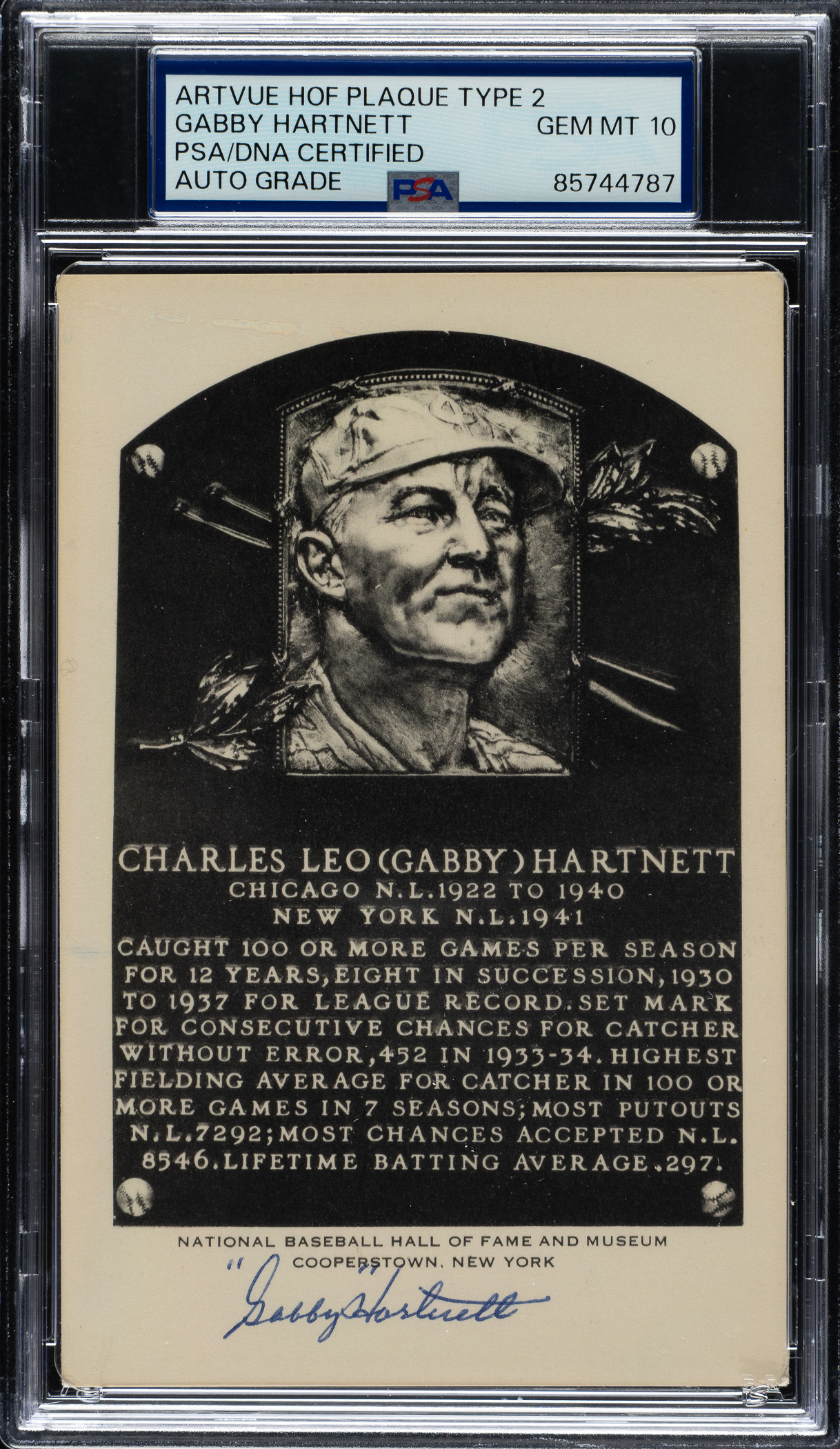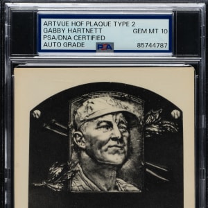 PSA/DNA has encapsulated the card, grading the signature GEM MINT 10. Chicago Cubs Hall of Famer Gabby Hartnett.