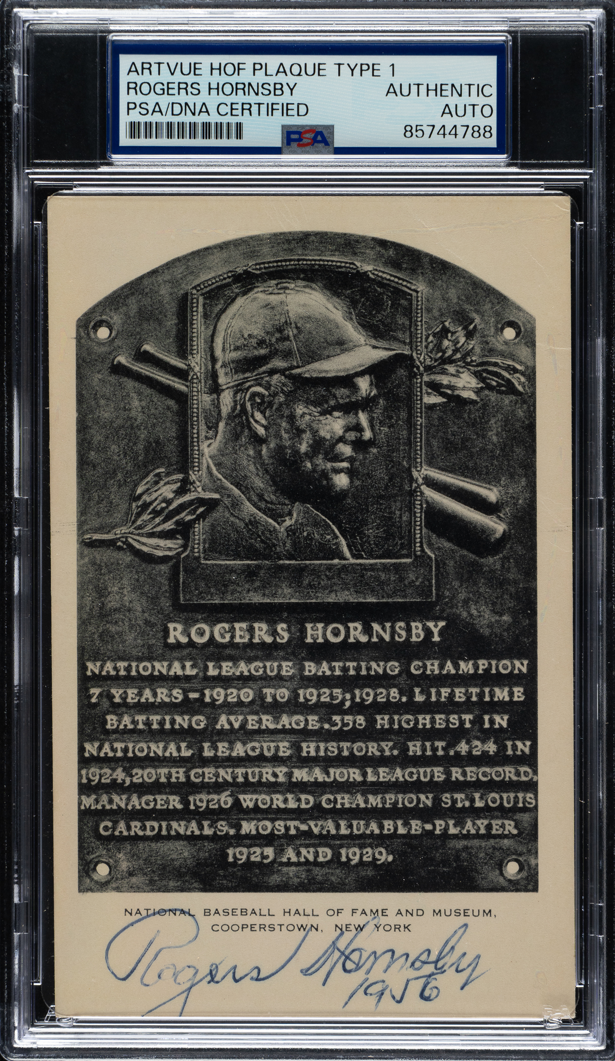 PSA/DNA has encapsulated the card, grading the signature Authentic. St. Louis Cardinals Hall of Famer Rogers Hornsby.