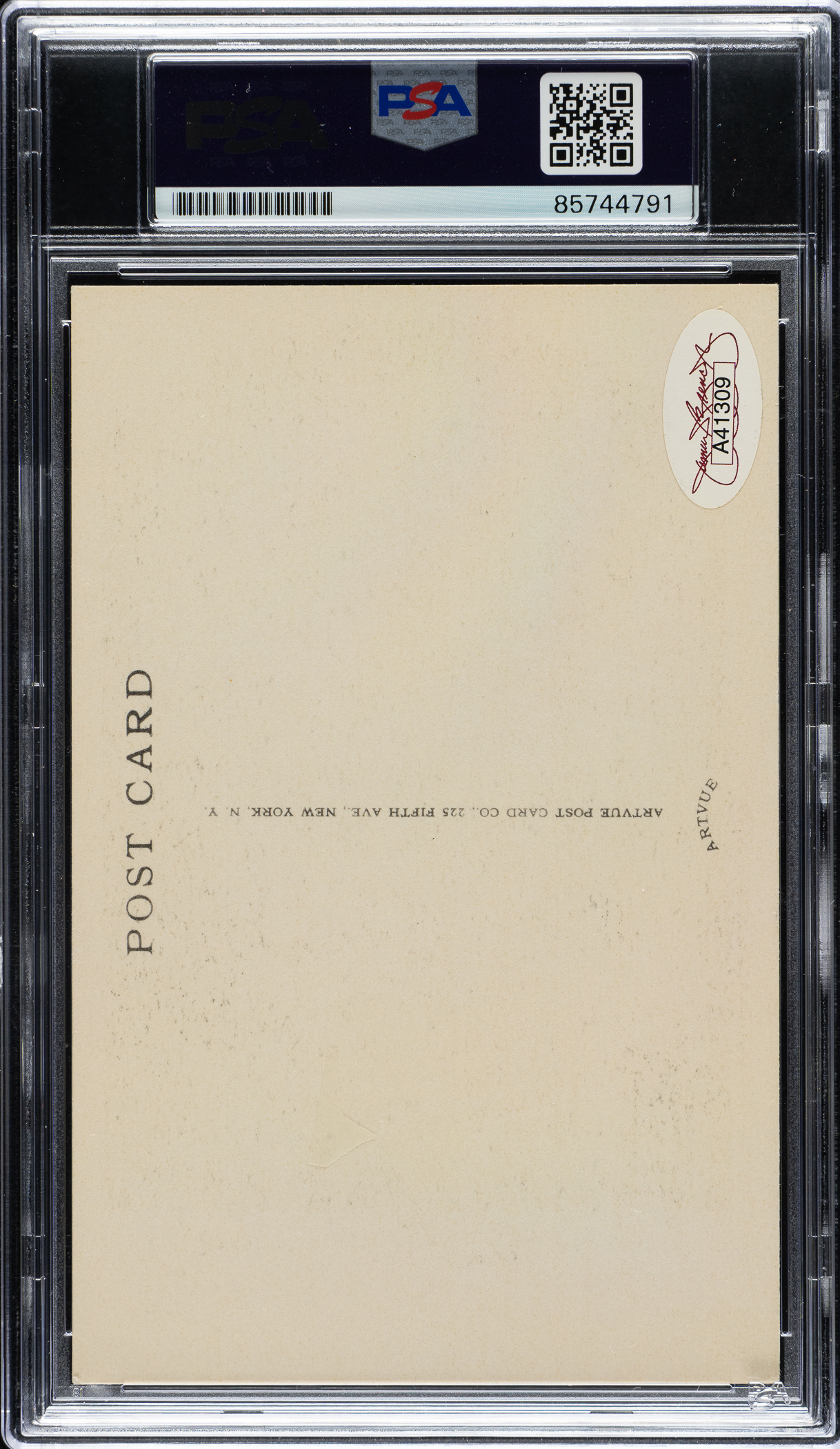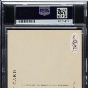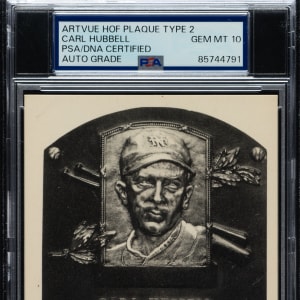 PSA/DNA has encapsulated the card, grading the signature GEM MINT 10. New York Giants Hall of Famer Carl Hubbell. James Spence/JSA certification sticker is affixed is to the postcard.