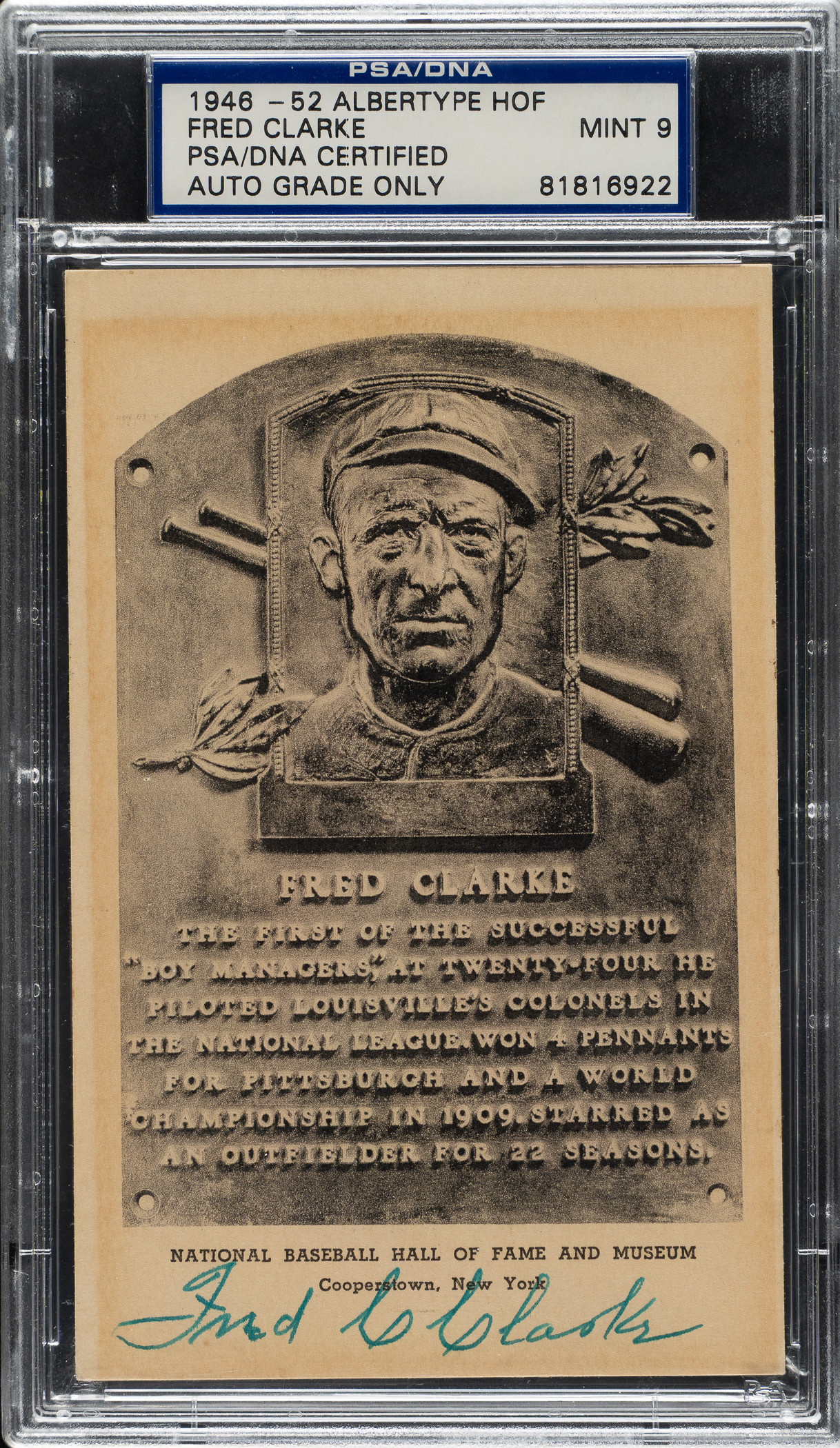 PSA/DNA has encapsulated the card, grading the signature MINT 9. Pittsburgh Pirates Hall of Famer Fred Clarke.