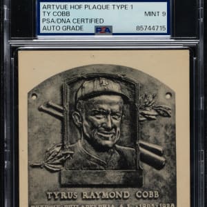 PSA/DNA has encapsulated the card, grading the signature MINT 9. Detroit Tigers Hall of Famer Ty Cobb.
