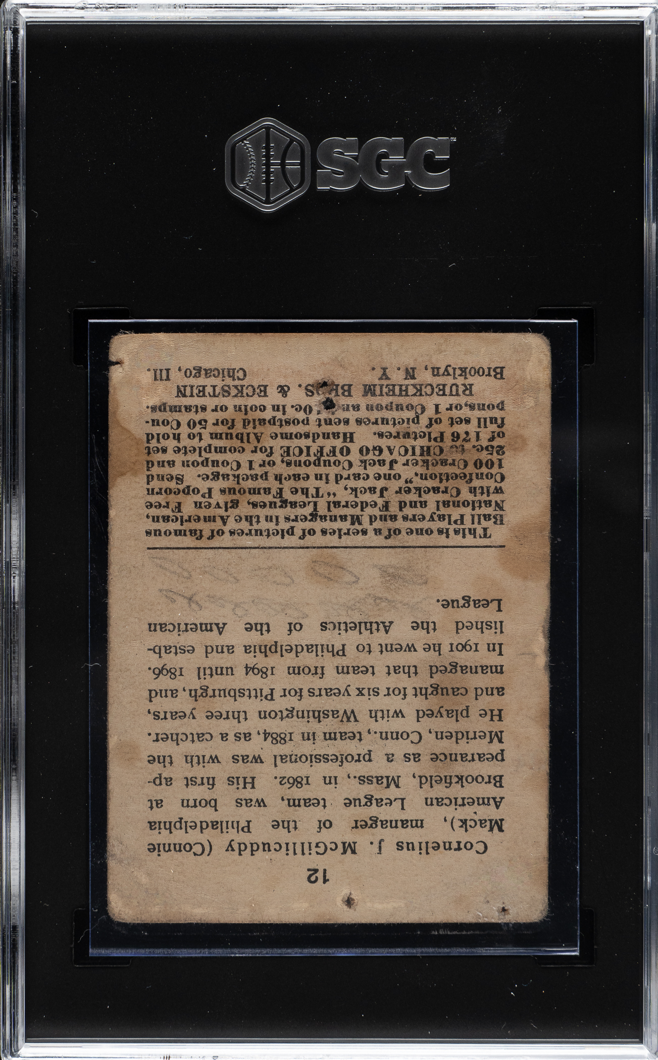 Graded POOR 1 by SGC. Philadelphia Athletics Hall of Famer Connie Mack.