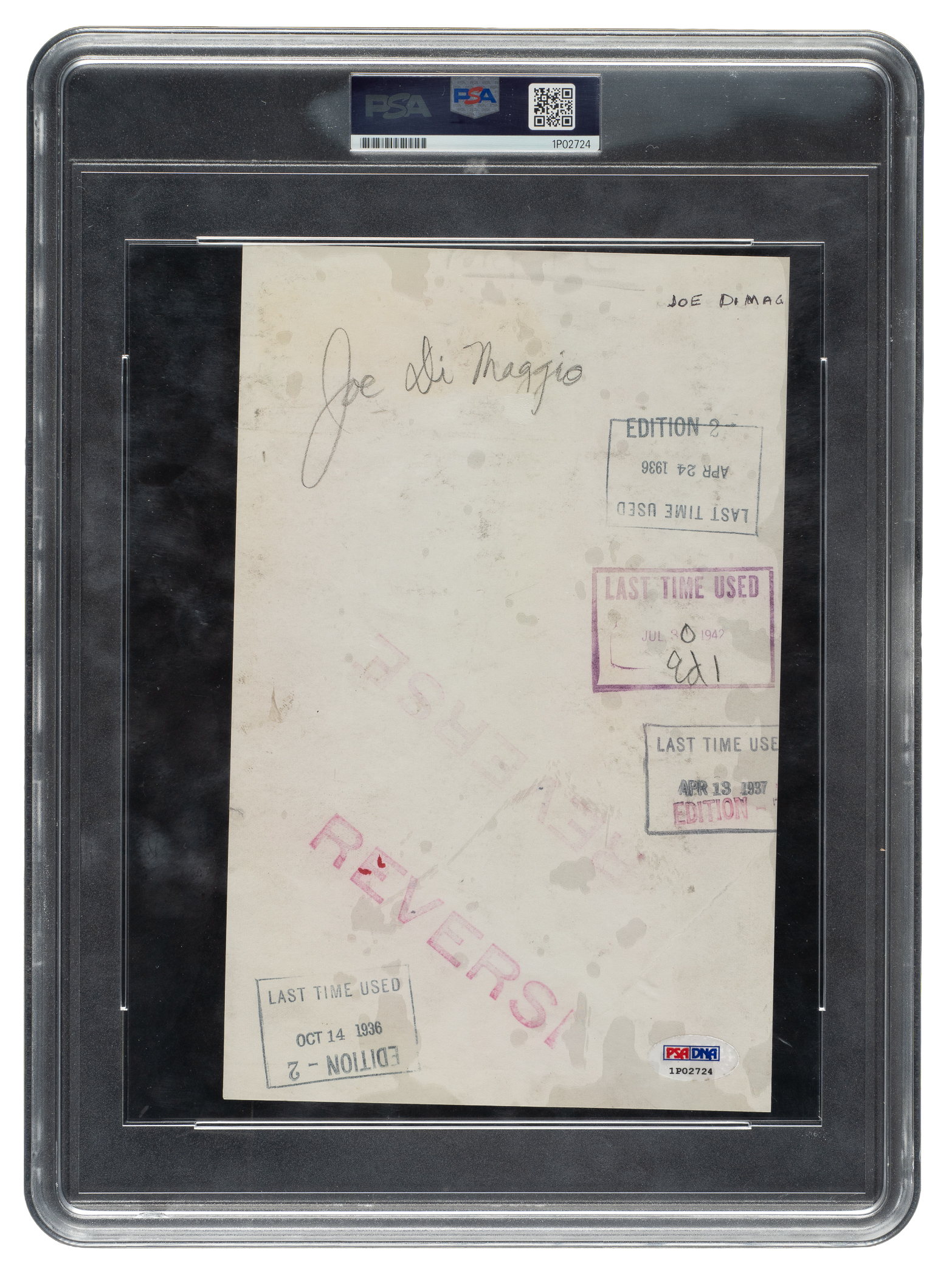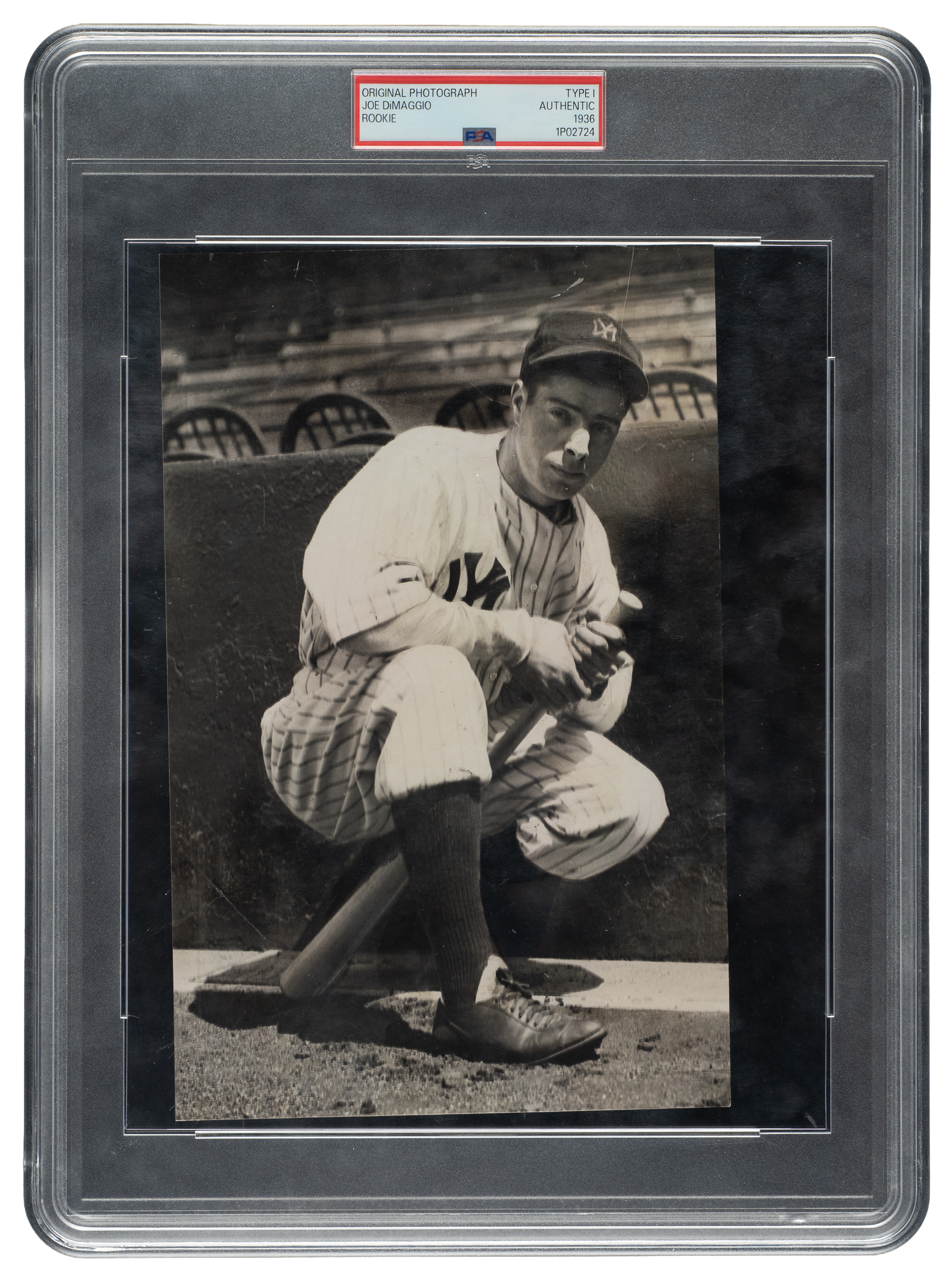 Encapsulated and certified by PSA/DNA as an original Type I photograph. New York Yankees Hall of Famer Joe DiMaggio.