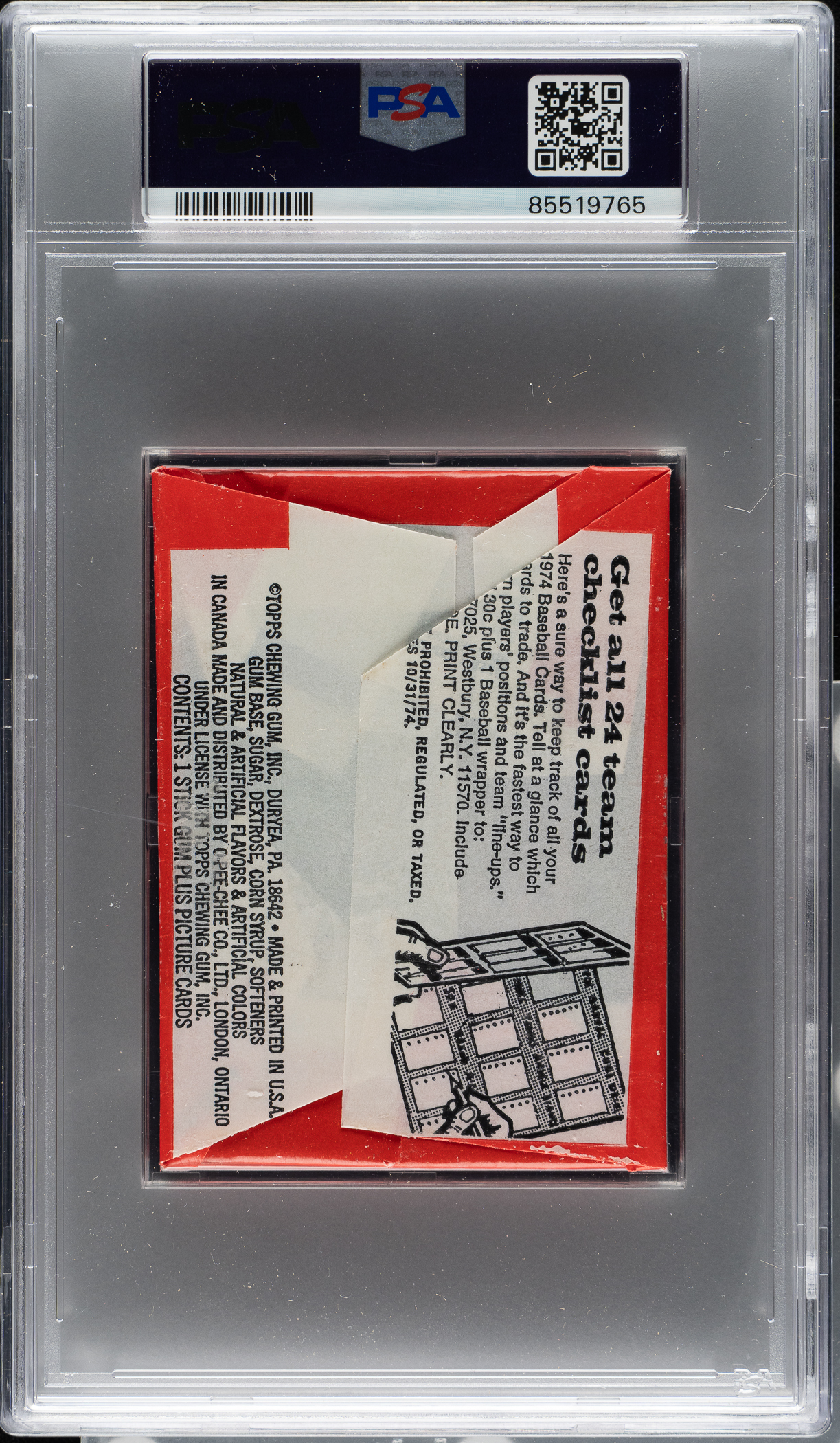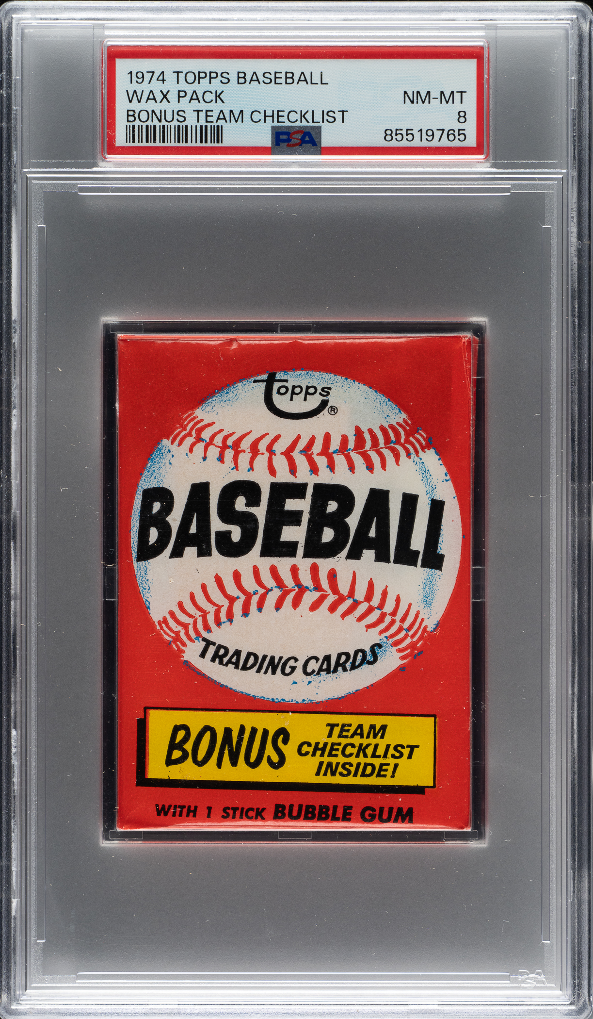 1974 Topps Unopened Wax Pack PSA NM-MT 8 - Bonus Team Checklist