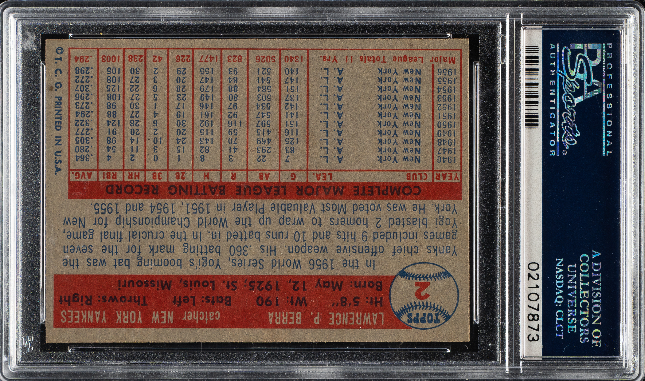 1957 Topps #2 Yogi Berra PSA MINT 9