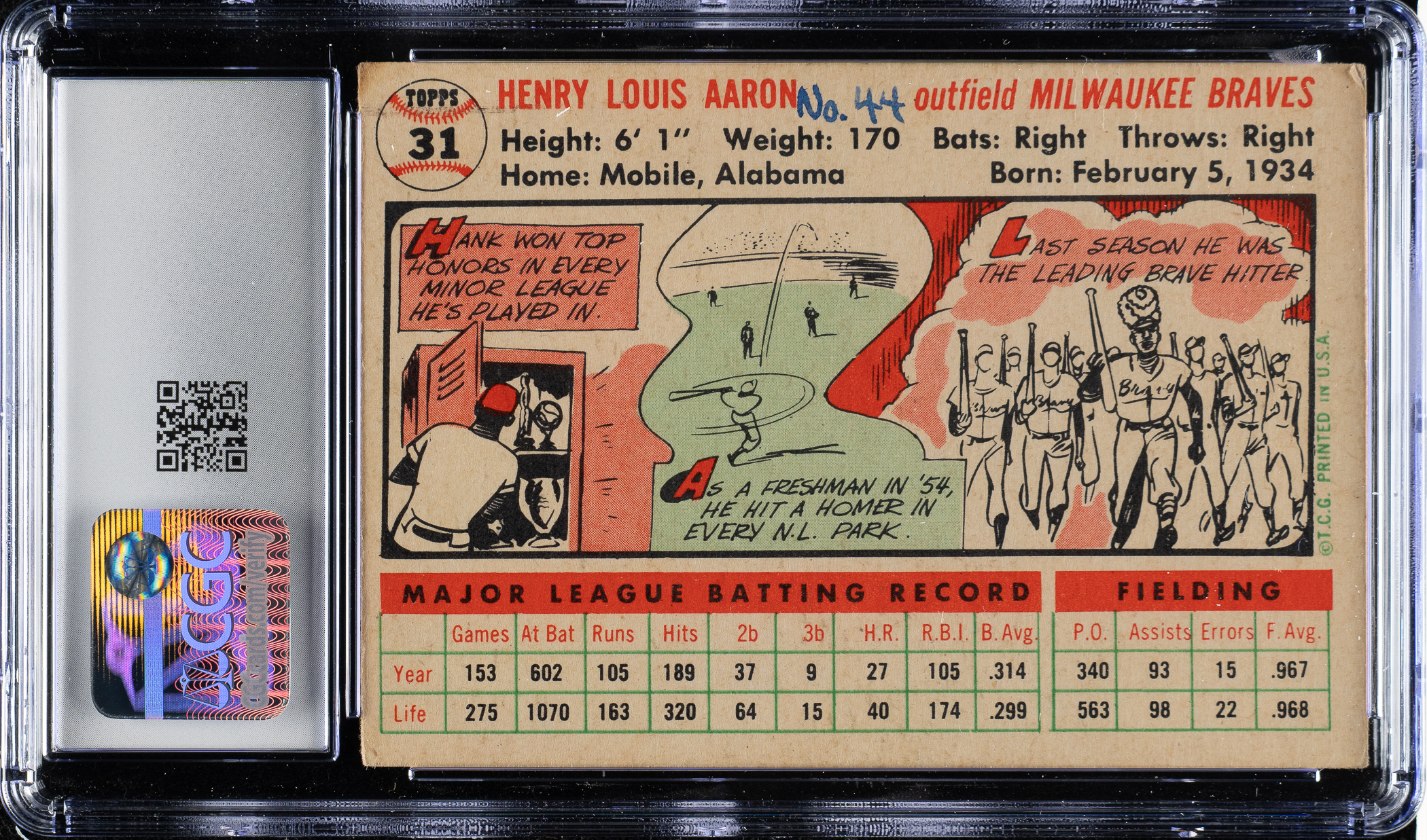 1956 Topps #31 Hank Aaron White Back CGC GOOD 2