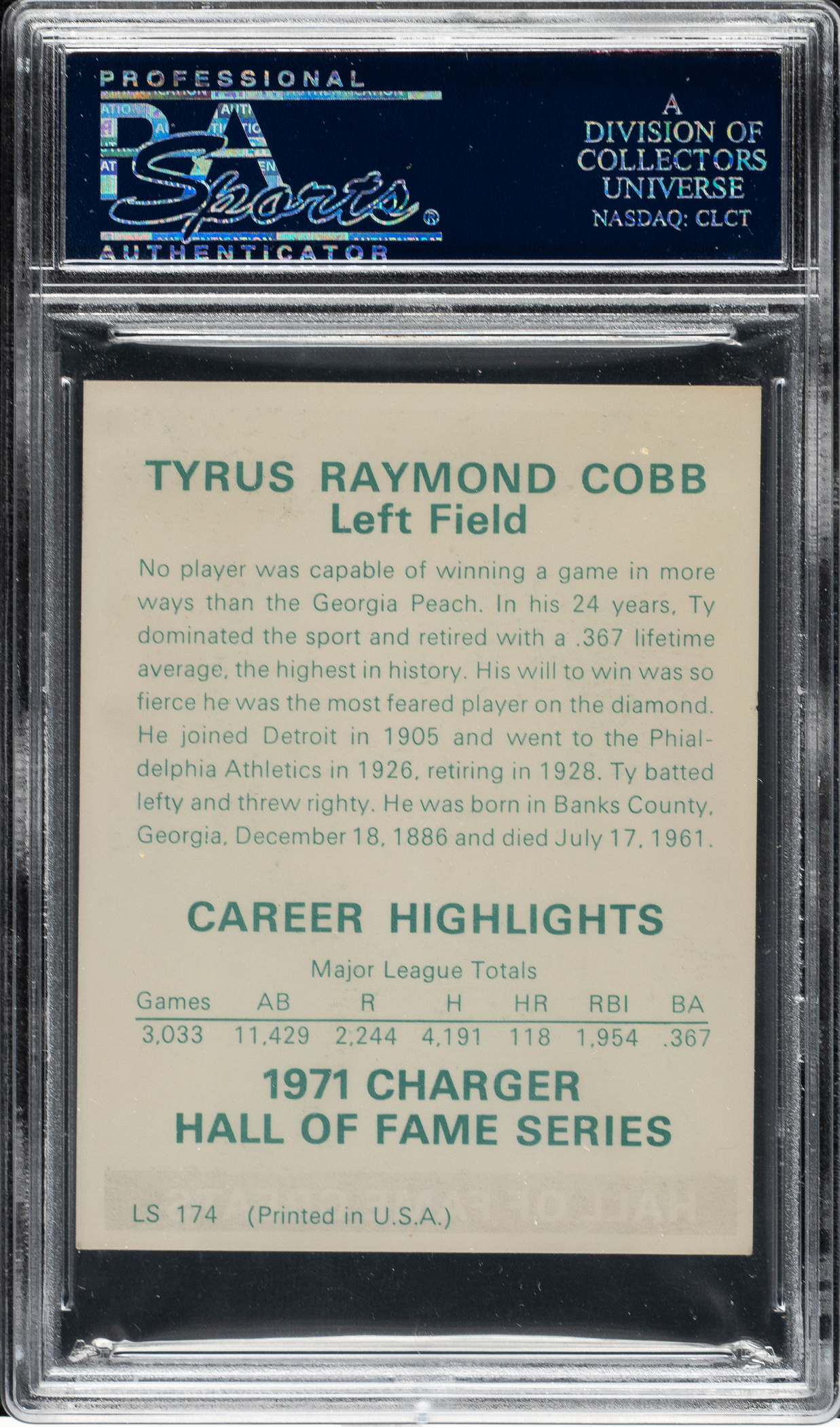 1971 Allstate Insurance Ty Cobb PSA EX+ 5.5