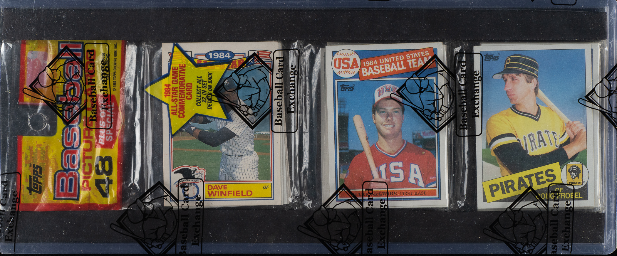 Oakland Athletics star Mark McGwire. This pack comes shrink-wrapped by Baseball Card Exchange (owned by Steve Hart, the foremost expert on unopened material).