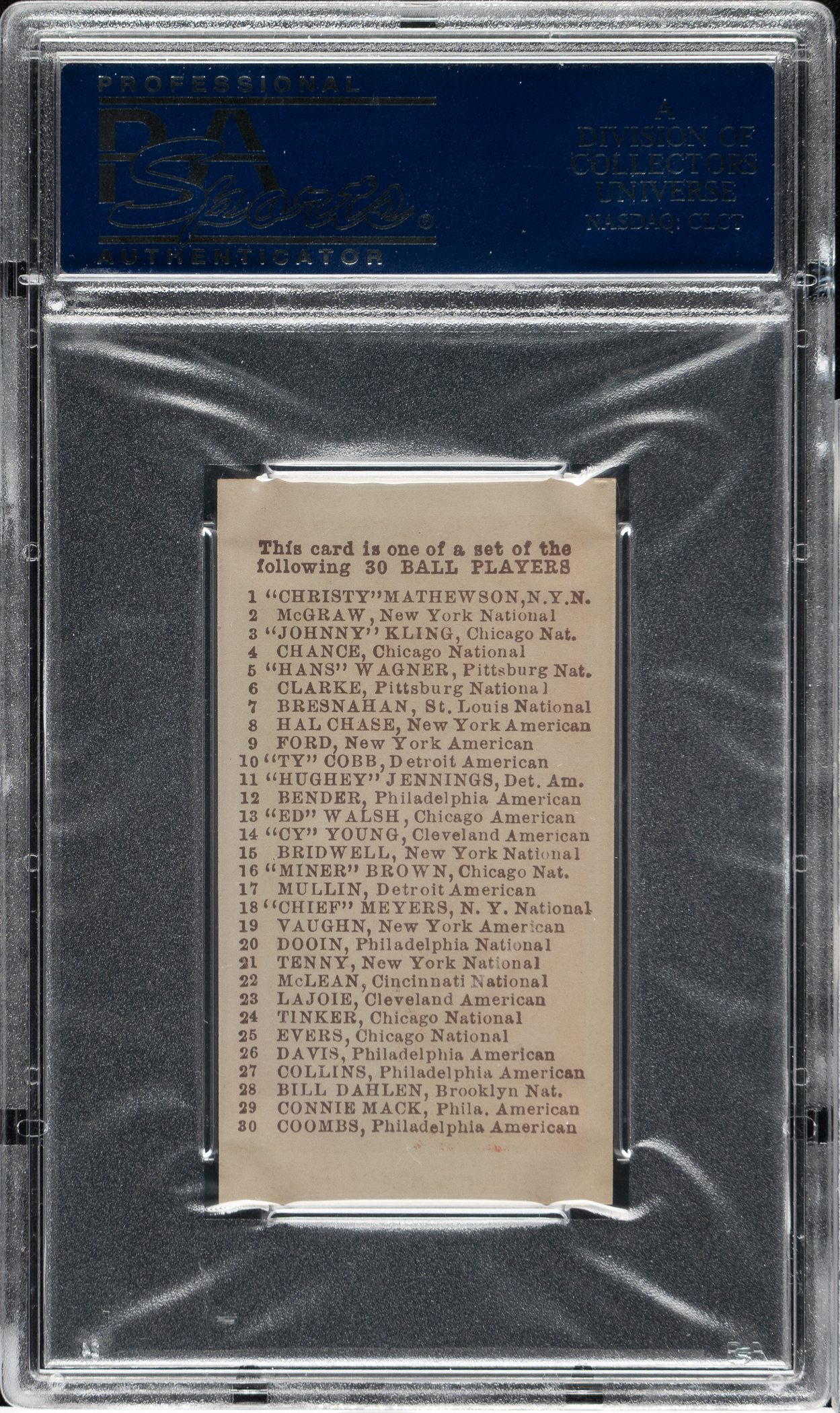 1910 E98 Anonymous "Set of 30" Hippo Vaughn PSA NM 7 - Red Background - Black Swamp Find
