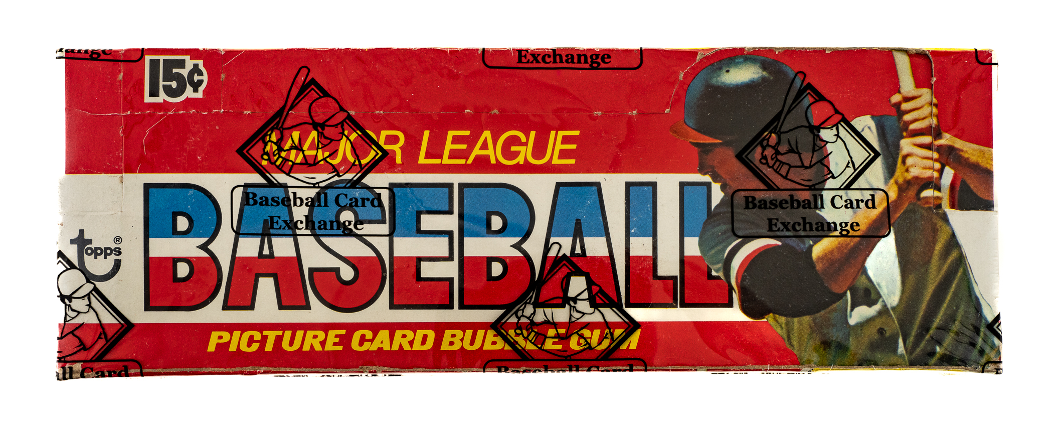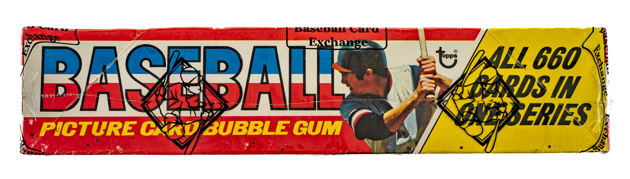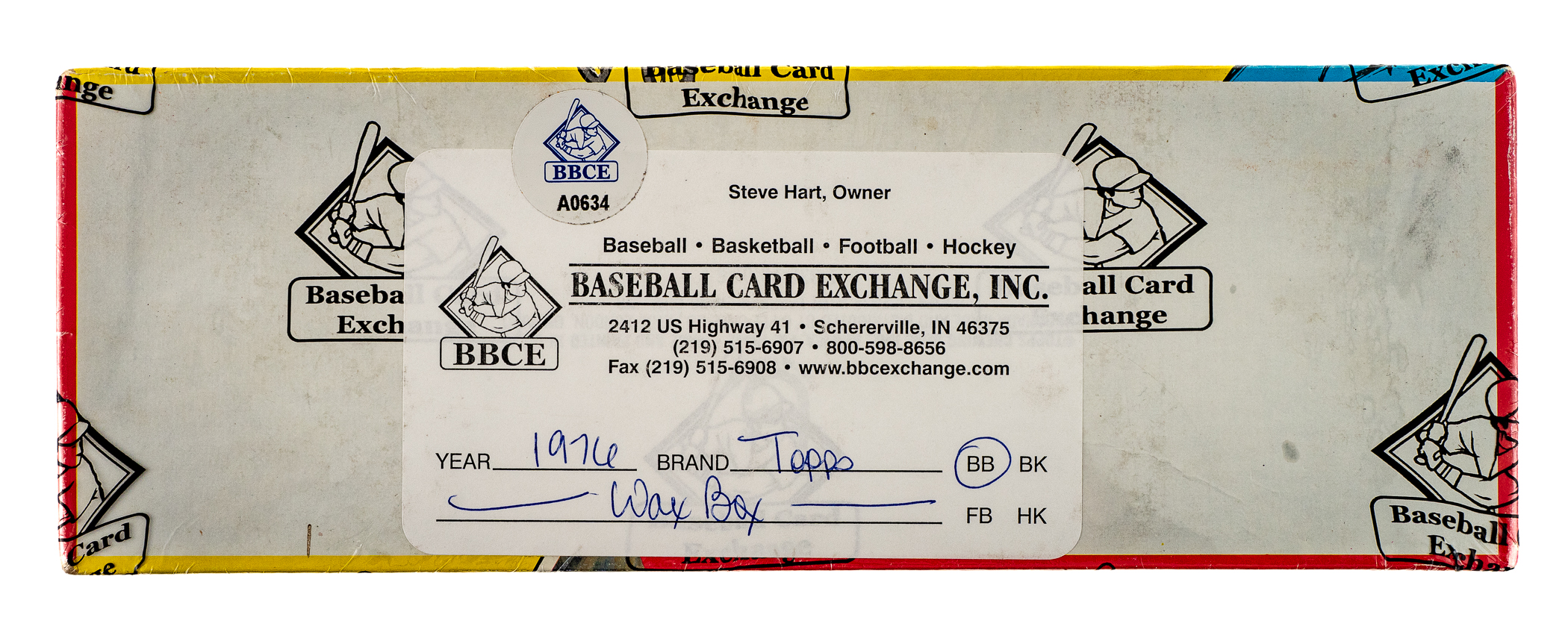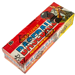 Complete, original unopened 36-count wax box of 1976 Topps baseball. The box contains 36 wax packs, with each pack containing 10 cards for a total of 360 cards. The offered example is a 15-cent box. Veteran unopened collectors will note that the 15-cent is a much tougher box than the 10-cent variation. The 1976 Topps set includes many Hall of Famers such as Brett, Eckersley (rookie), Yount, Ryan, and Aaron. All the other stars of the day are also included. While it is impossible to provide guarantees with reference to grading of unopened material, there is the very real possibility that within this box are Mint or Gem Mint cards. This box comes shrink-wrapped by Baseball Card Exchange (owned by Steve Hart, the foremost expert on unopened material). This is an incredible and extremely rare unopened wax box from this very popular set. The size/weight of this item requires that there will be an additional shipping charge for this lot.