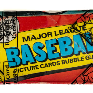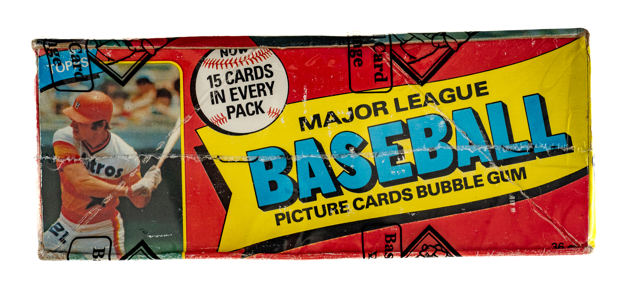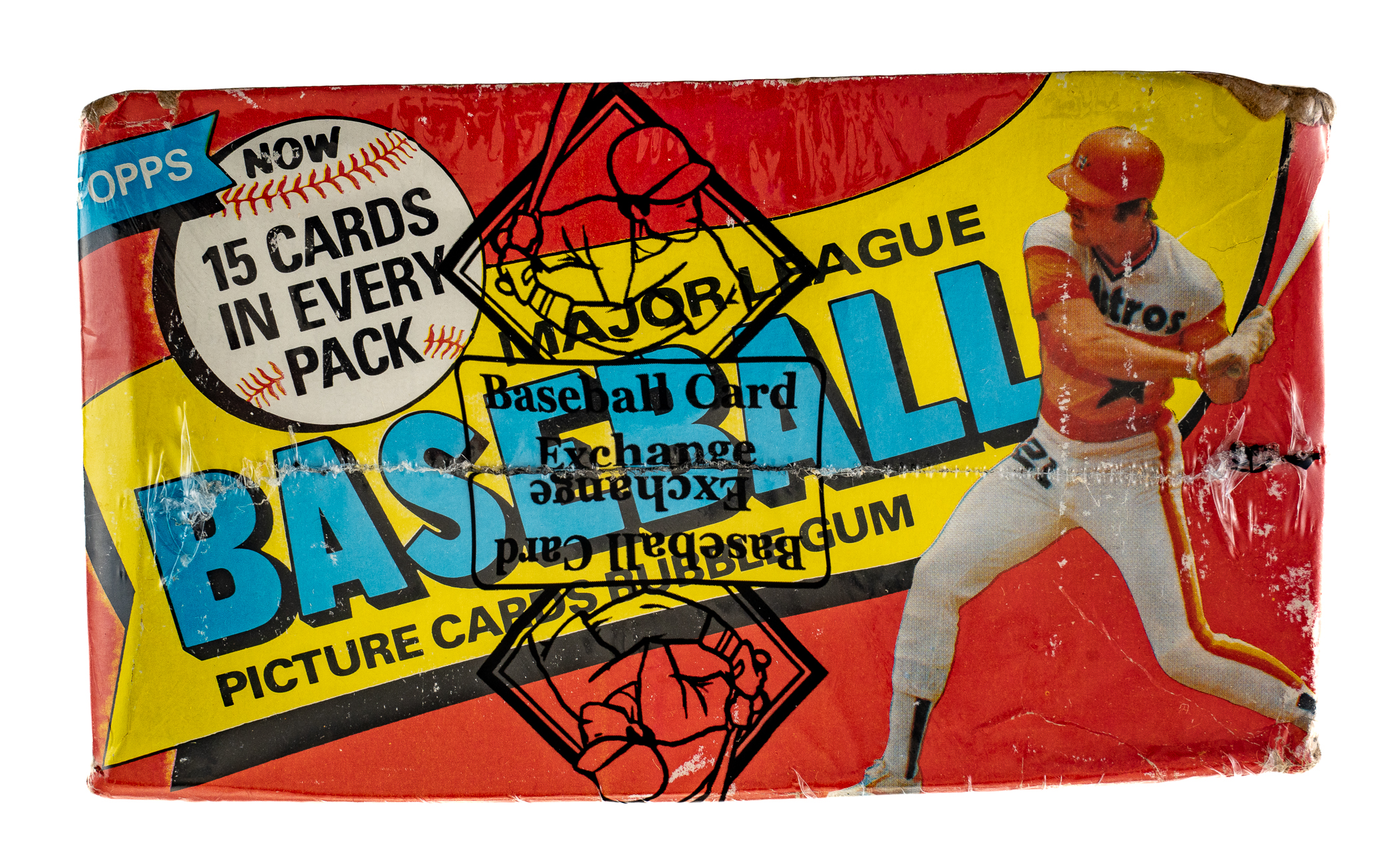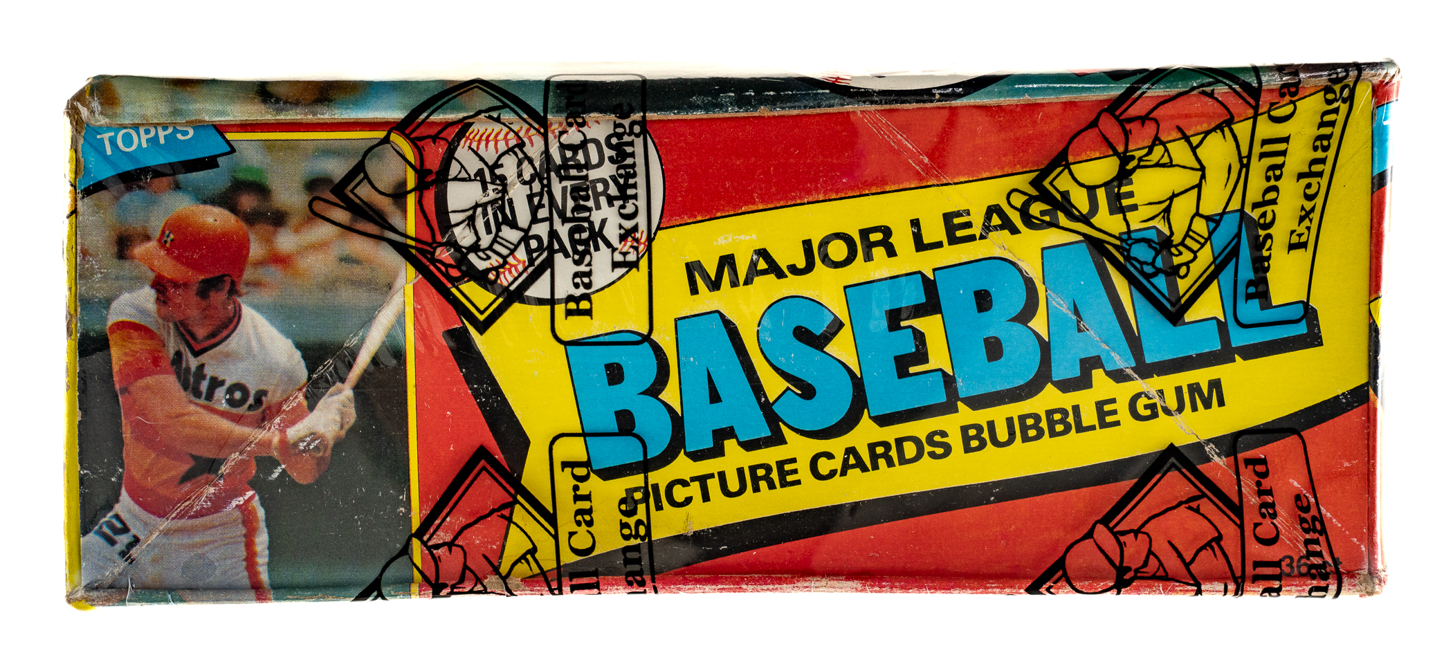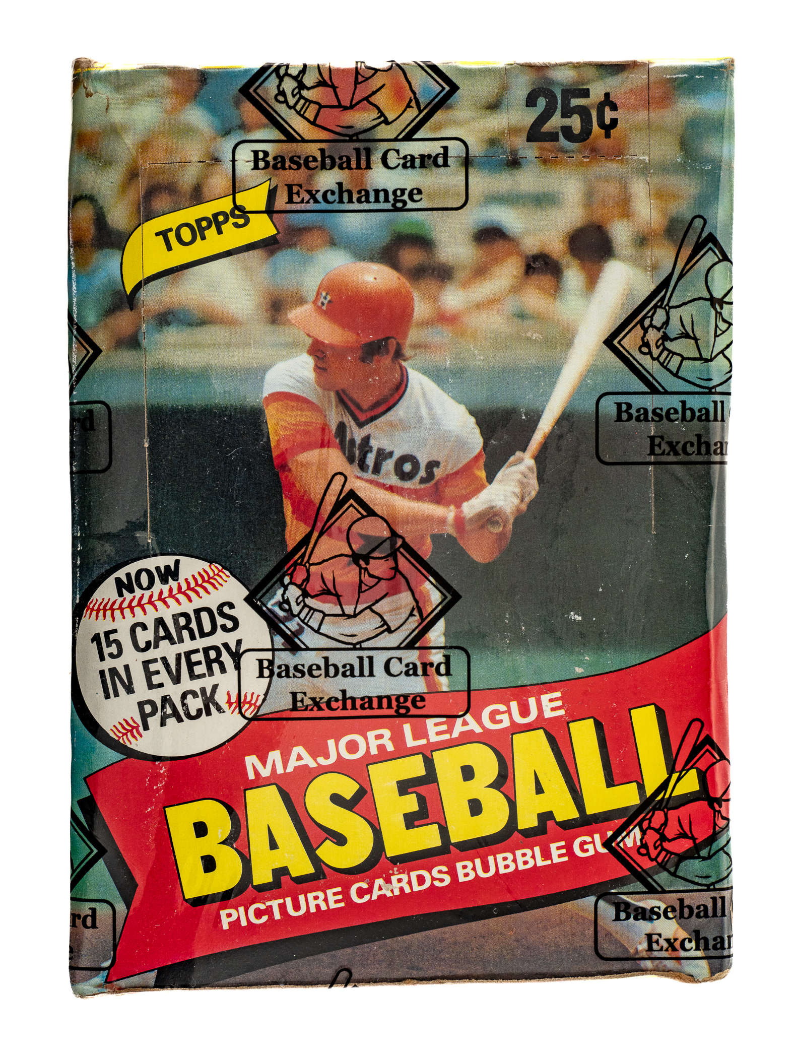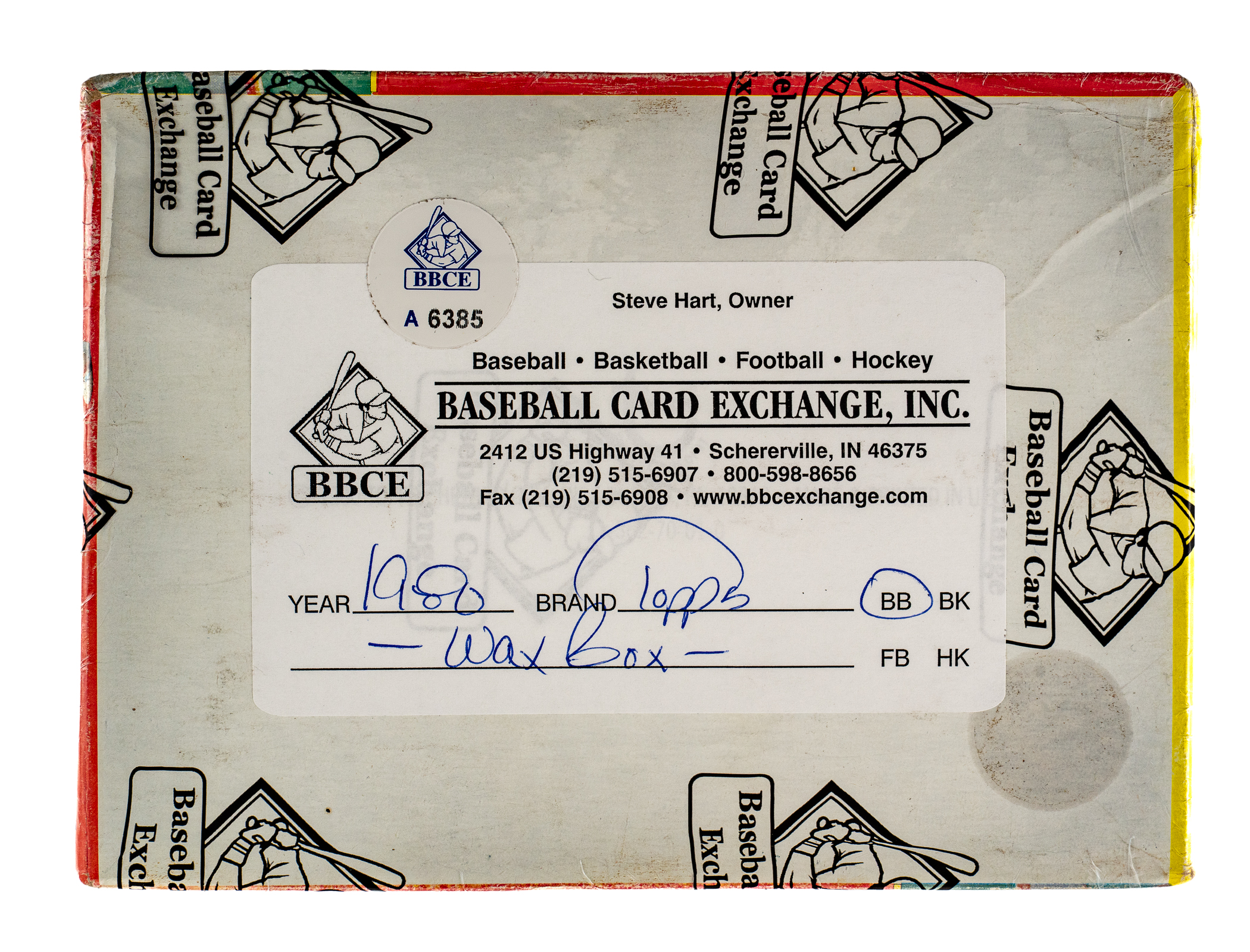 Complete, original unopened wax box of 1980 Topps baseball. The box houses thirty-six wax packs with each pack containing fifteen cards for a total of 540 cards. The 1980 Topps set includes the rookie card of Rickey Henderson, and many other Hall of Famers, including Nolan Ryan, George Brett, and Ozzie Smith. This box comes shrink-wrapped by Baseball Card Exchange (owned by Steve Hart, the foremost expert on unopened material). The size/weight of this item requires that there will be an additional shipping charge for this lot.
