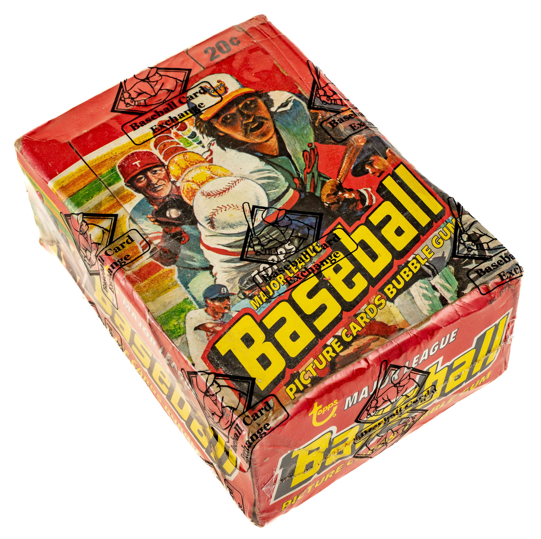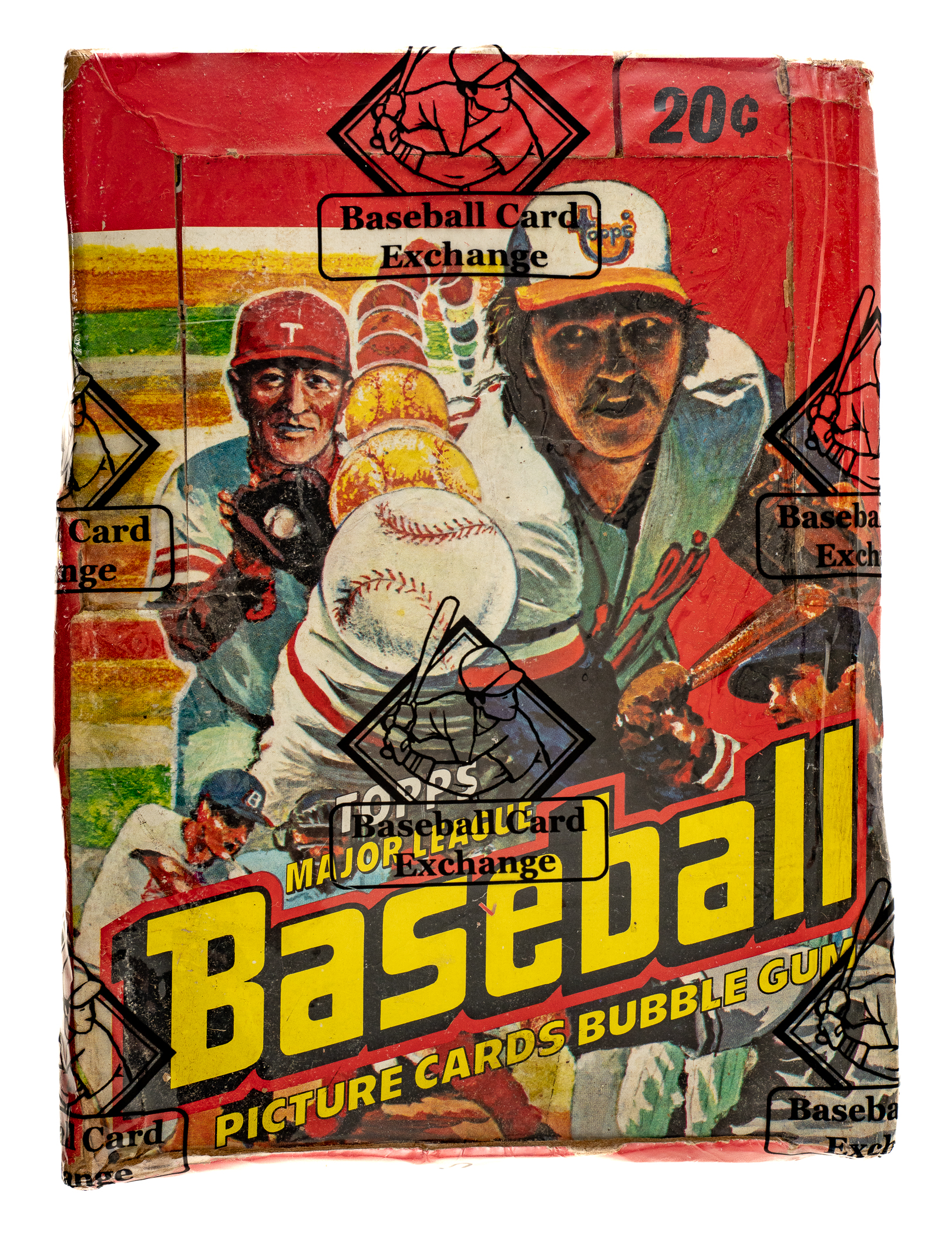 Complete, original unopened wax box of 1978 Topps baseball. The box houses 36 packs, with each pack containing 10 cards for a total of 360 cards. The 1978 Topps set includes rookie cards of Eddie Murray and Paul Molitor, as well as cards of many other Hall of Famers, including Nolan Ryan, George Brett, and Robin Yount. This box comes shrink-wrapped by Baseball Card Exchange (owned by Steve Hart, the foremost expert on unopened material). The size/weight of this item requires that there will be an additional shipping charge for this lot.