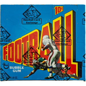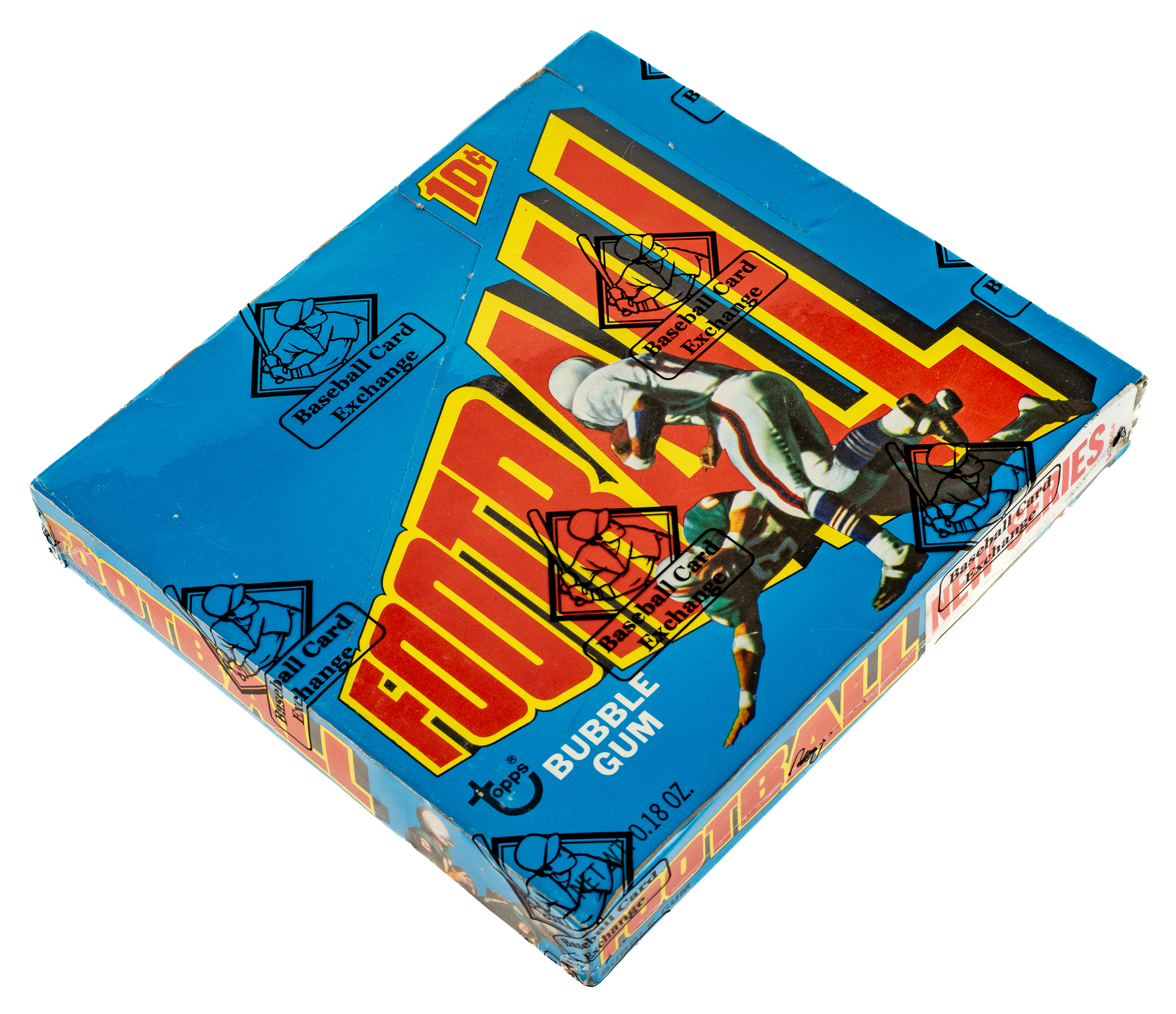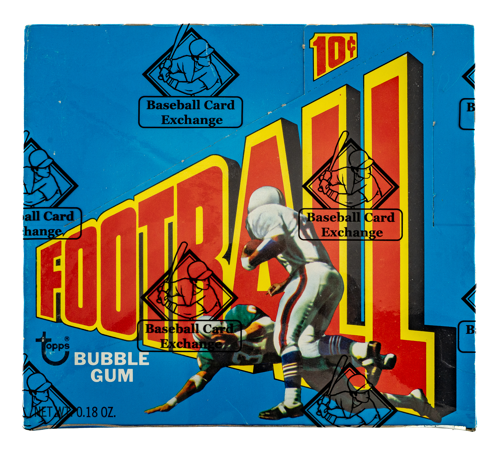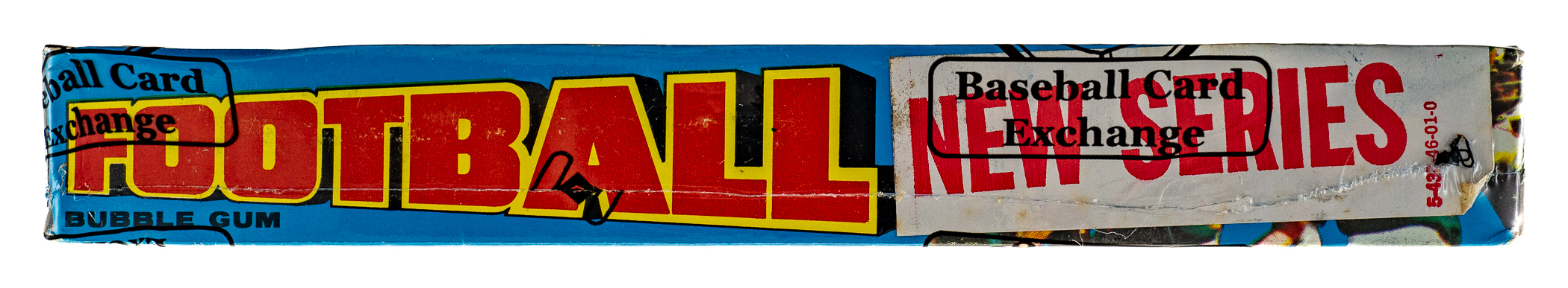 Complete, original unopened wax box of 1972 Topps football. The box houses 24 packs with each pack containing 10 cards for a total of 240 cards. This is a second-series box (#133-263), a series that includes Roger Staubach (rookie card), Terry Bradshaw, and Johnny Unitas, as well as numerous other stars and Hall of Famers. This wax box originates directly from the legendary Larry Fritsch Vault. It comes shrink-wrapped by Baseball Card Exchange (owned by Steve Hart, the foremost expert on unopened material) and bears his certified designation as having originated from the "Fritsch Vault." This is a stunning, complete, unopened wax box. The size/weight of this item requires that there will be an additional shipping charge for this lot.