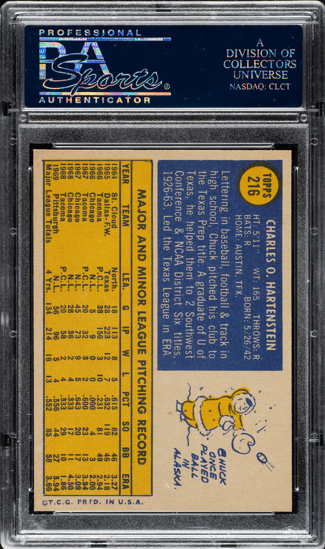 1970 Topps #216 Chuck Hartenstein PSA GEM MINT 10