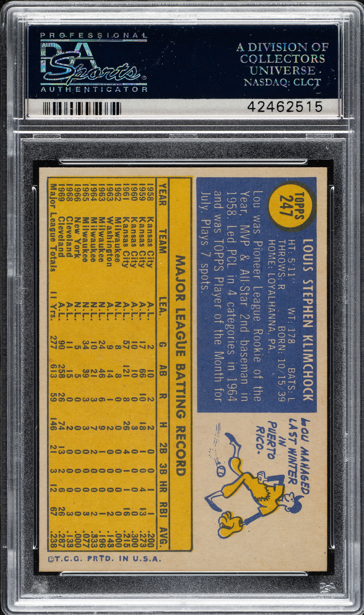 1970 Topps #247 Lou Klimchock PSA GEM MINT 10