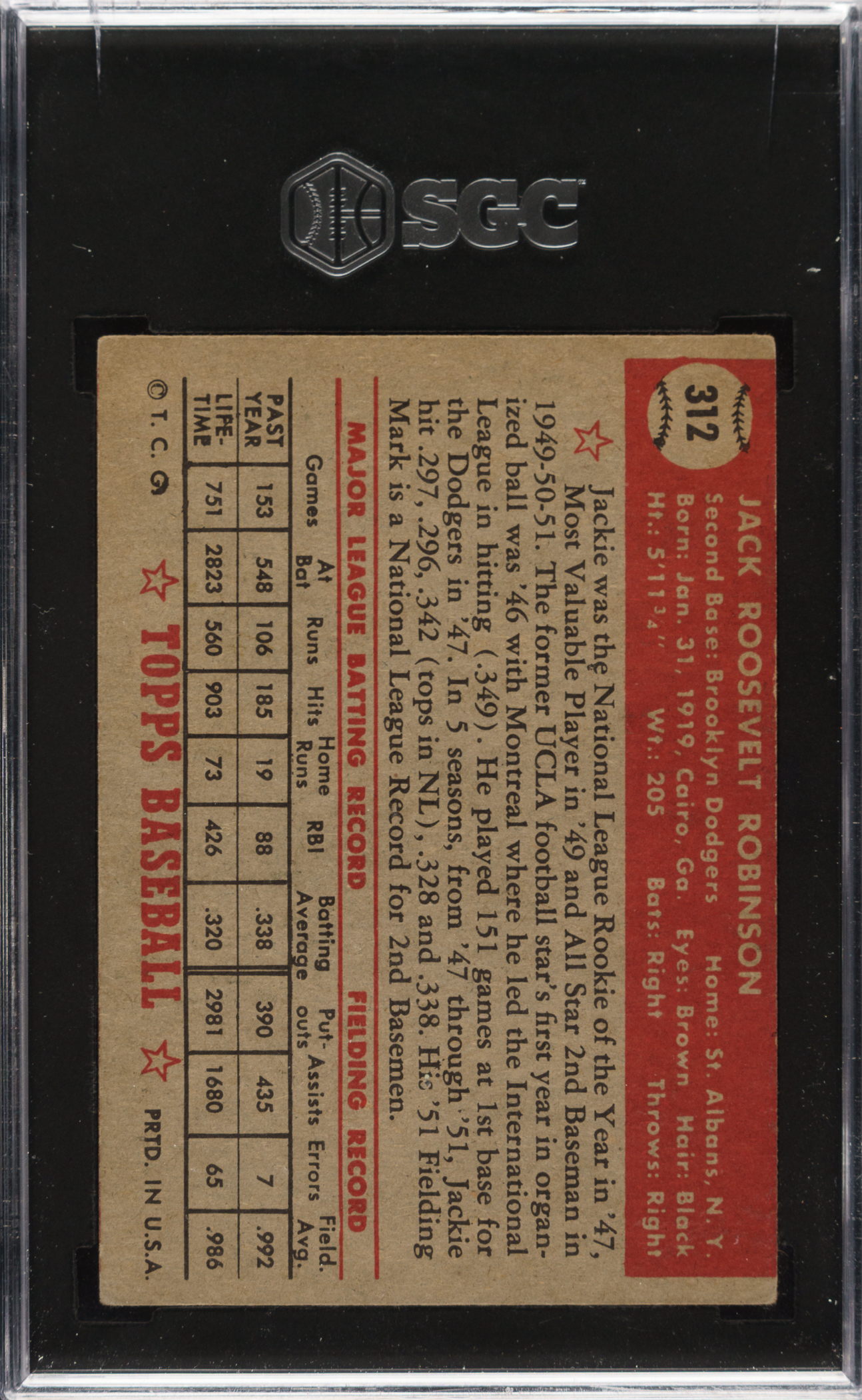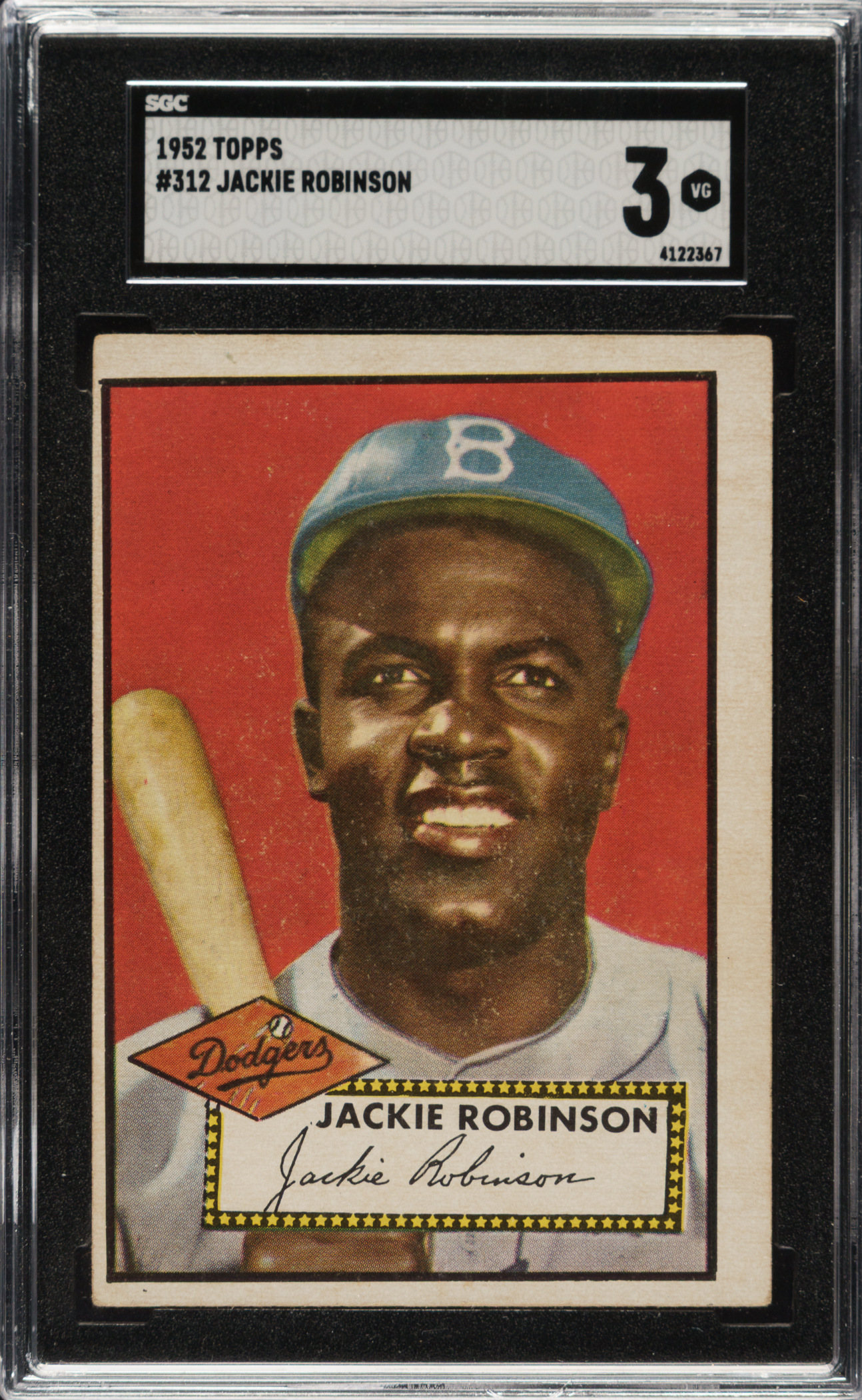 Graded VG 3 by SGC. Brooklyn Dodgers Hall of Famer Jackie Robinson.