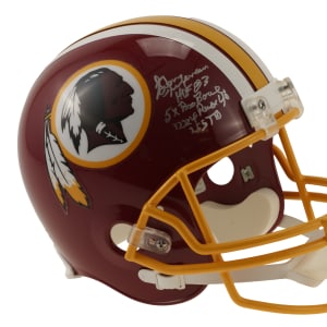 Washington Redskins Hall of Famer Sonny Jurgenson signed full-size replica helmet. Basic certification from Beckett. The size/weight of this item requires that there will be an additional shipping charge for this lot.